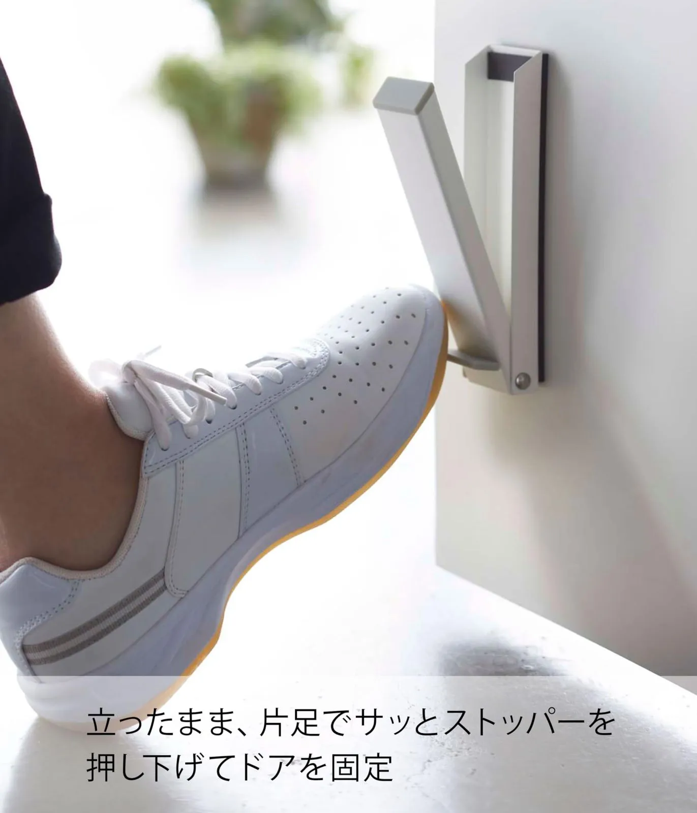 立ったまま操作できる便利な玄関ドアストッパー