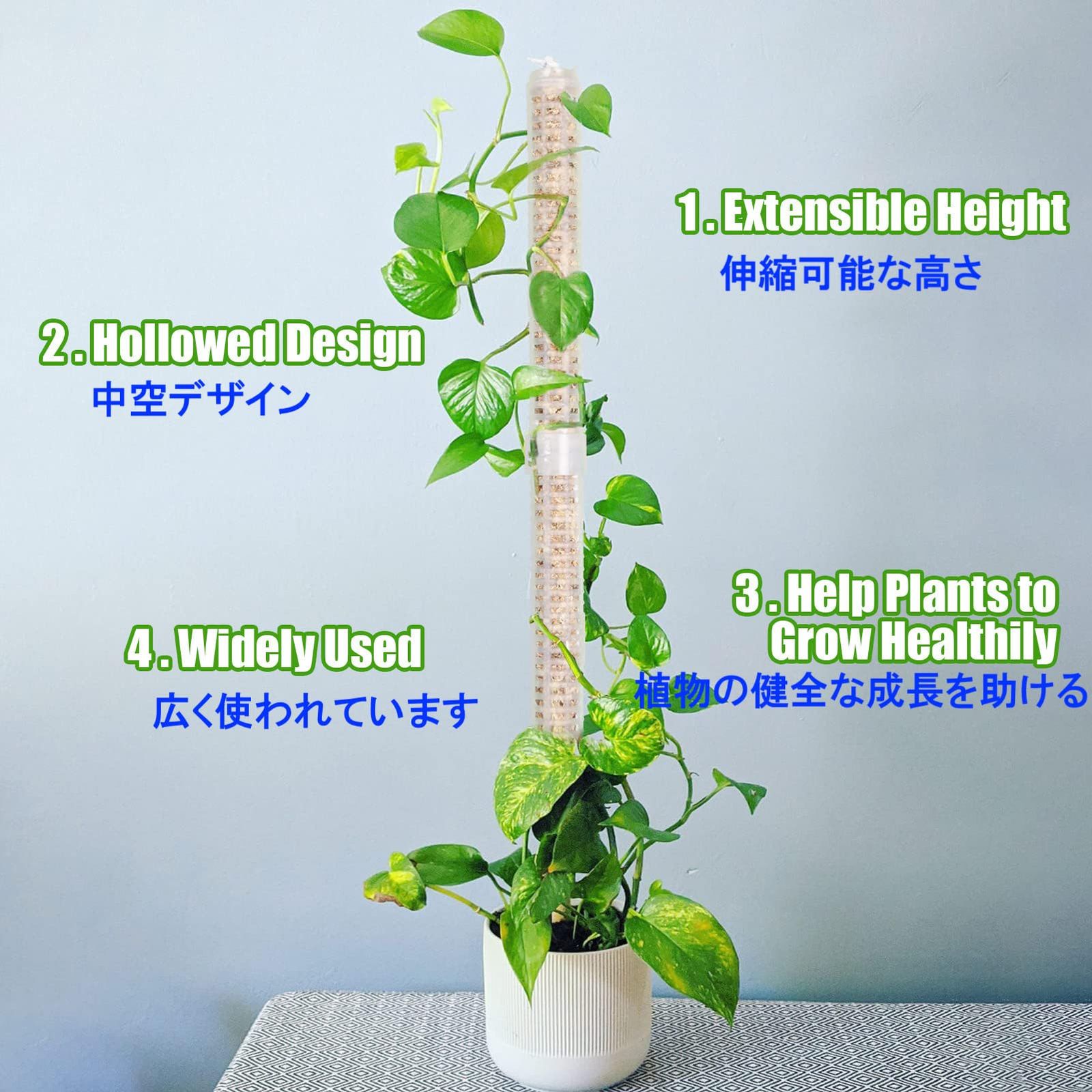 軽量かつ耐久性のあるプラスチック素材を使用し、観葉植物の成長に合わせて支柱を連結することができ、高さを調整できます。内部には土壌、土苔、ミズゴケ、砂利などの栄養物を充填することができます。