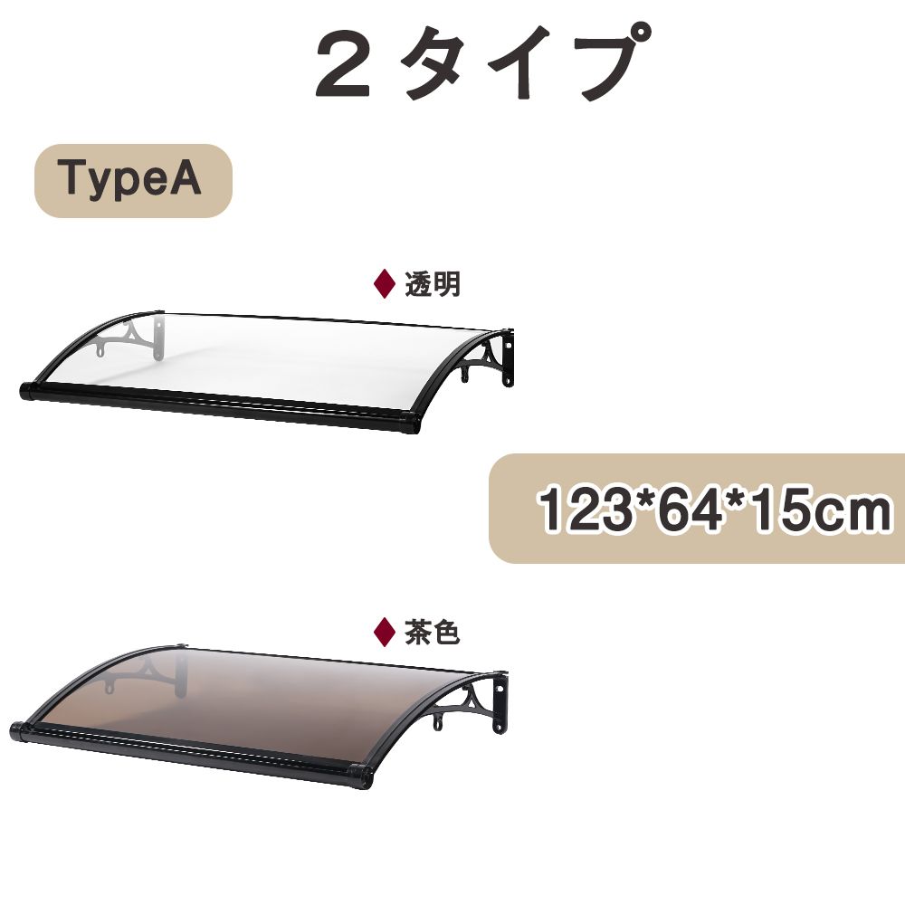 TYPE A 64*123cm 透明雨よけ 屋根庇 雪対策 ひさし 組立が簡単 雨よけ 雪よけ テラス 玄関 梅雨対策 住宅用 パティオ日除け 後付け 雨雪パネルをミュート ブラケット付き キャノピー テラス