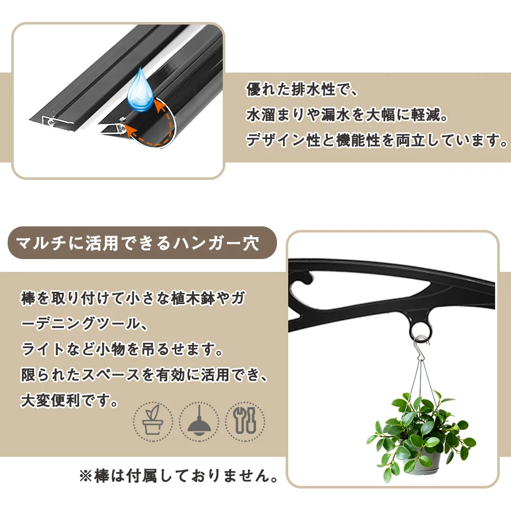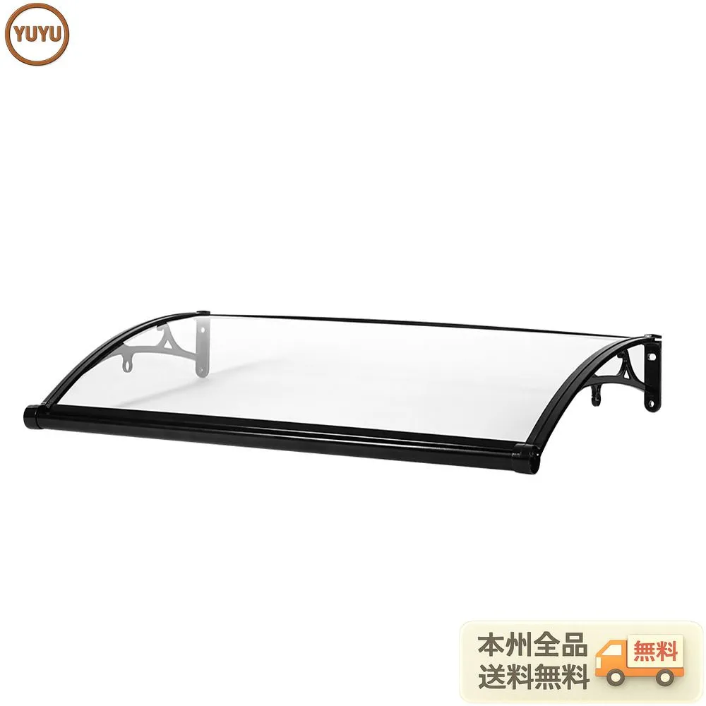 後付けでも理想の屋根ひさしが!雨の日でも玄関先がびしょ濡れに……強風で吹き込む雨が悩み……ドアや壁の劣化が心配……高強度かつ軽量な後付け専用屋根ひさしで、そんな悩みを解決します。雨風をしっかり遮り、家の外観も美しく彩ります。 あらゆる場面に適用可能窓の上部 ドアの上部 エアコンの室外機 バルコニー 玄関周りを四季折々に快適にお守りします。暑い日差しにはしっかりと日陰を作り、ドアや外壁を紫外線から優しく保護。お出かけやお帰り時の心地よさを演出し、上質な空間をご提供します。 優れた排水性:前傾カーブと傾斜デザイン独自の前傾カーブ設計により、水はけが抜群です。先端に向かってつけた傾斜が、雨水や落ち葉などのゴミをスムーズに前方へ排出。雨の日の水たまりや、雪が積もりやすい地域での出入口の雪だまりを効果的に軽減します。耐荷重:150kg 長時間・大量の積雪時は、こまめな除雪をお願いいたします。 排水溝とハンガー穴サイド両面の排水デザインにより、水の流れをスムーズにします。降雨時の水溜まりや水漏れの悩みを解消し、水の流れる方向もコントロール。ブラケットは広い曲率デザインを採用し、排水性を高めています。優れた排水性で、水溜まりや漏水を大幅に軽減。デザイン性と機能性を両立しています。 マルチに活用できるハンガー穴 棒を取り付けて小さな植木鉢やガーデニングツール、ライトなど小物を吊るせます。限られたスペースを有効に活用でき、大変便利です。棒は付属しておりません。 高い耐久性:強靭なアルミニウム合金フレームアルミニウム合金製ブラケットを採用した重さに強い頑丈なフレーム。雨や風、紫外線に劣化しない、長くお使いいただける安心設計です。頑丈なフレーム構造によりグラつきを抑え、高い安定性を実現しました。 高品質なパネル高品質で耐候性・耐衝撃のPC製パネルを使用。海辺のお住まいでも長くご使用いただけます。高強度!高い透明度で採光性を確保します。両面に施されたUVコーティング??有害な紫外線をカットします。ローノイズ素材で雨音を軽減します。パネルには、輸送中のキズ防止のため保護フィルムが貼られています。組立の際には、このフィルムを剥がしてお使いください。 簡単に取り付ける初めての方でも迷わず組み立てられるよう設計されています。取扱説明書が付属されております。お届け後、すぐに作業を始められます。ビデオもあります。壁面への取り付けには、電動ドリルとハンマーが必要となります。お客様ご自身でご準備ください。取り付けはアンカー施工が必要です。安全面を考慮し、専門業者へのご相談をおすすめします。 組立品/完成品 組立品