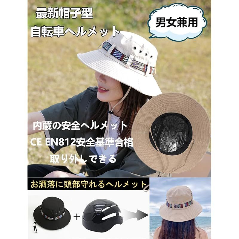 商品名:自転車ヘルメット 帽子型 メンズ レディース 大人 おしゃれ 内蔵 簡易ヘルメット UVカット 小顔効果 CE認証 超軽量 通気 通勤 通学 高校生 普段着 防災用 アウトドア 登山 釣り ハイキング あご紐付き 頭囲54-58CM