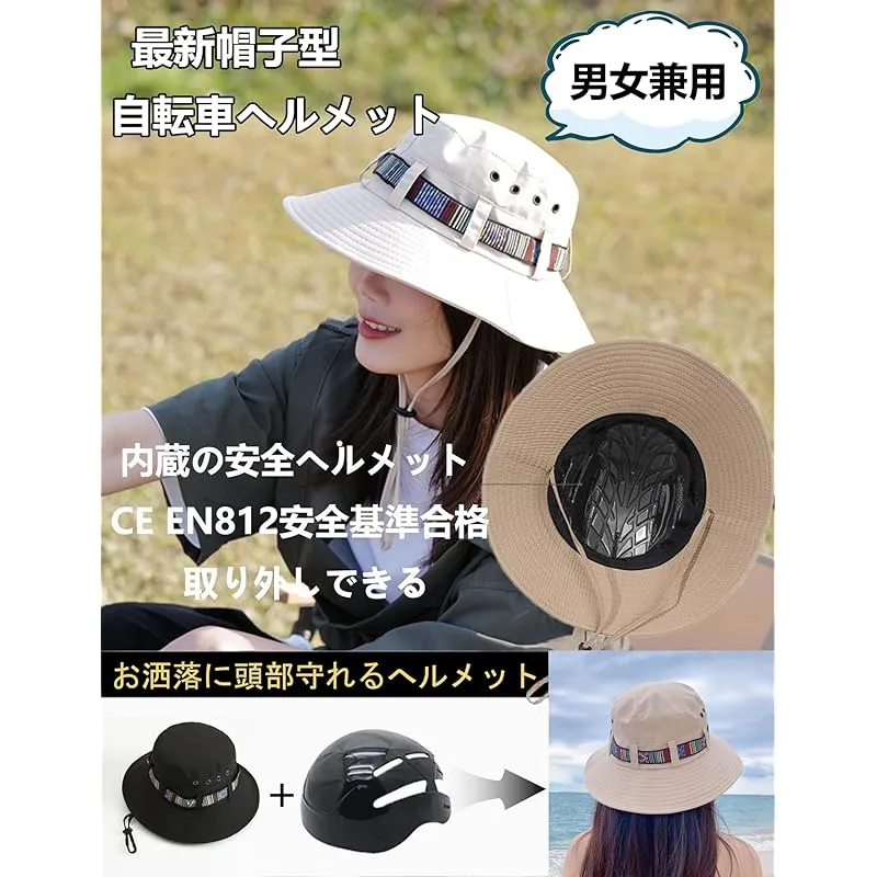 【最新設計】最新ハット型自転車ヘルメット。おしゃれなバケットハットにインナープロテクターを内蔵した帽子型自転車ヘルメットになります、帽子のデザイン性とヘルメットの性能を両立し、オシャレをしながら頭を守ります、外観は帽子を被っているようにしか見えないので、スーパーやコンビニのお買い物、お子様のお迎えも被ったままでおしゃれ。