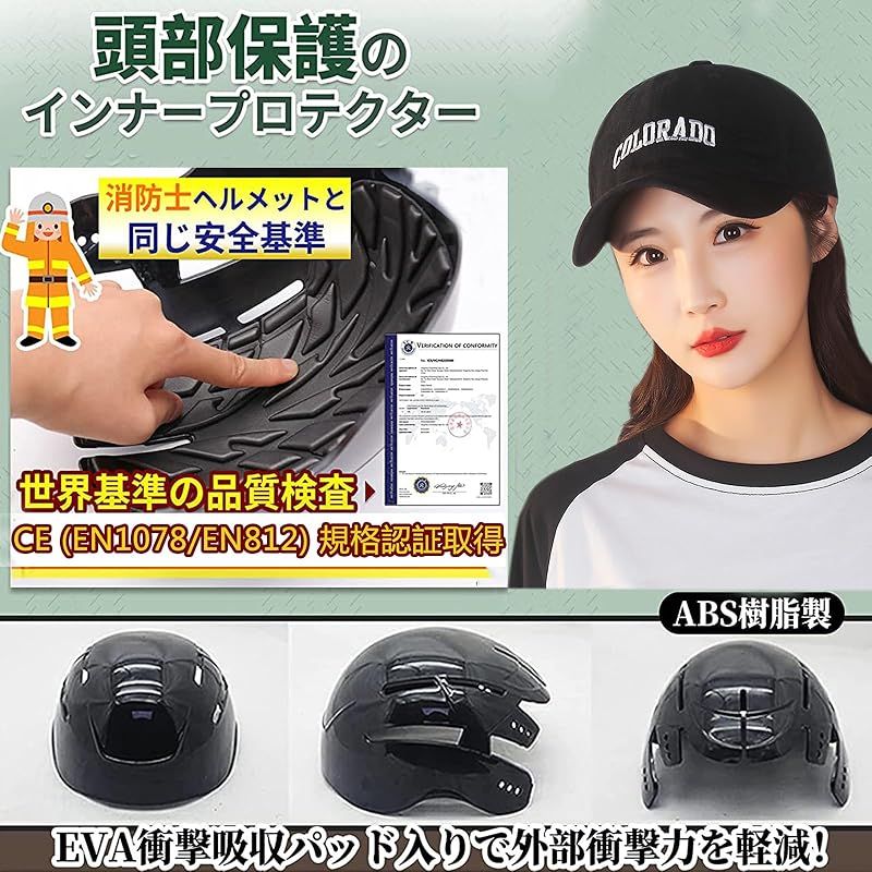 【2025年最新野球帽ヘルメット】素材:キャップは優れた100%コットンで作られ。通気性が抜群です。内部の保護構造:ABS樹脂+EVAクッション。ヘルメット内部にはクッションがあり、頭部を保護し外部からの衝撃を軽減します。これは、実用性、おしゃれを兼ね備えた取り外し可能な簡易帽子型ヘルメットです。従来のヘルメットとは異なり、日常の使用により適しています。頭囲:調整ベルト付きですので54~62とサイズ調整が可能。