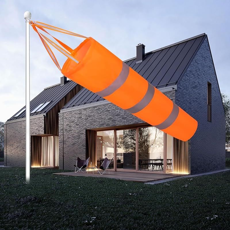 【省エネ& 反射ベルト付き】電気出力なし、屋外で適用、風の方向を示す吹き流しの風向計です。そして、この風測定用風向計は反射ベルト付きなので、夜でも風向を知られます。明るいオレンジ色で天気の悪い日も比較的見やすいのも特徴の一つです。