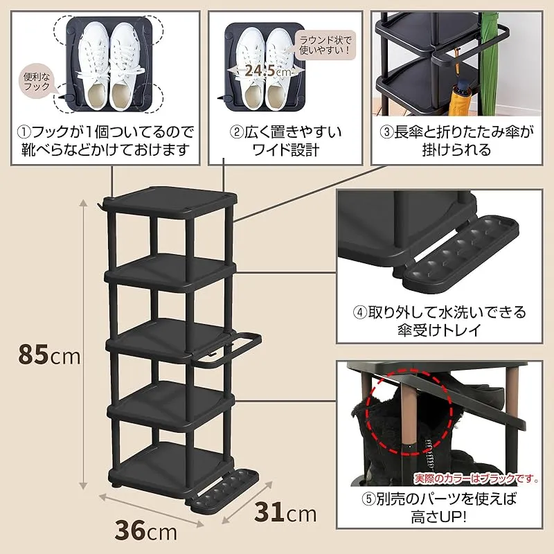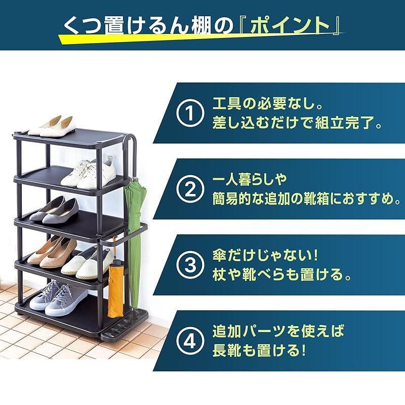 【商品詳細】 ブランド:天馬(Tenma) 商品種別:据え置き型シューズラック 商品名:PRX くつ置けるん棚 5段 ブラック 製造元:天馬(Tenma) 商品番号:4904746087607 商品内容:幅36cm 色:ブラック 商品タイプ:5段