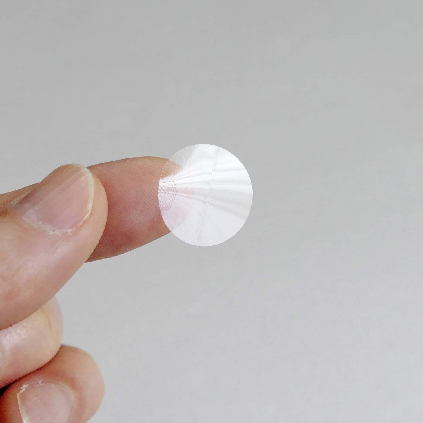正円で角がないのでひっかかりにくく、透明だからパッケージなどの模様を損なわず貼れます!