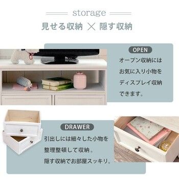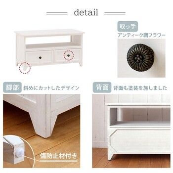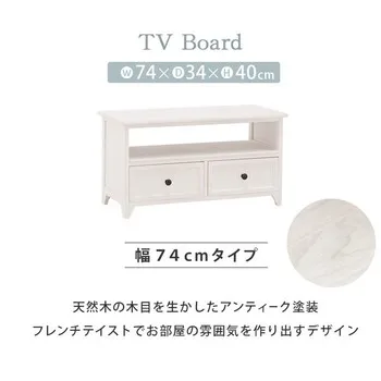 シンプルなデザインのテレビ台をフレンチアンティーク風に仕上げています。