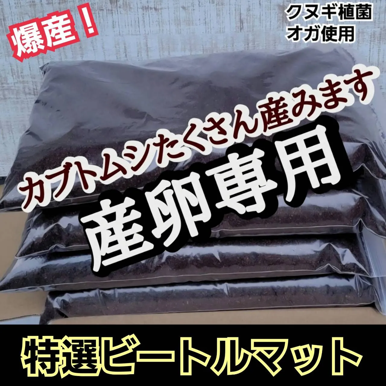 天然環境に近づけるため、植菌処理により朽ちさせたオガ粉を使用しており、カブトムシの産卵意欲を高め、多産を促します。