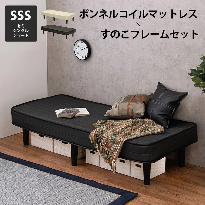 【商品説明】 耐圧分散に優れたボンネルコイルマットレス付きのすのこベッド。SSS(セミシングルショート)サイズ。