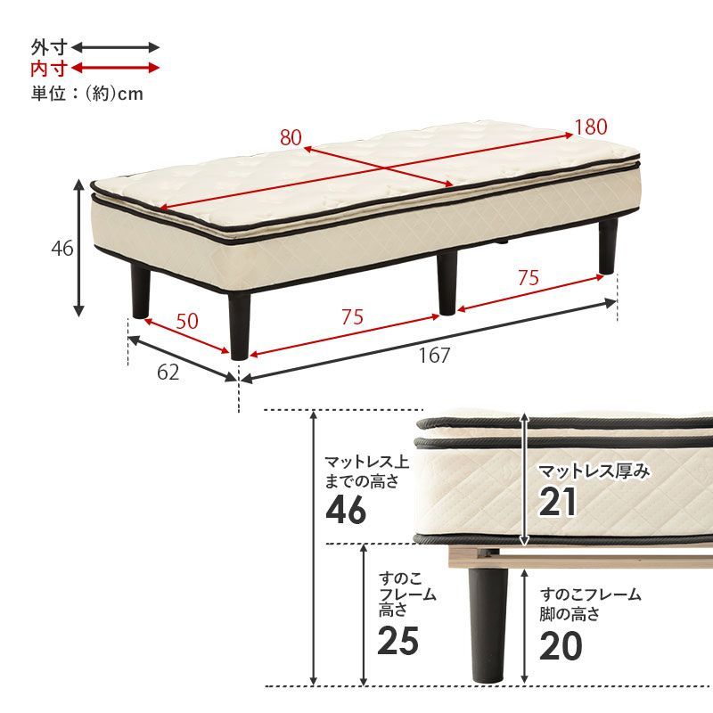 【商品サイズ】 (約)幅80×奥行180×高さ46cm
