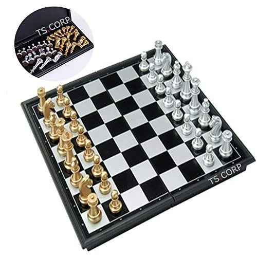 チェス マグネット チェスボード 折りたたみ チェスセット 日本語説明書付き(金&銀)