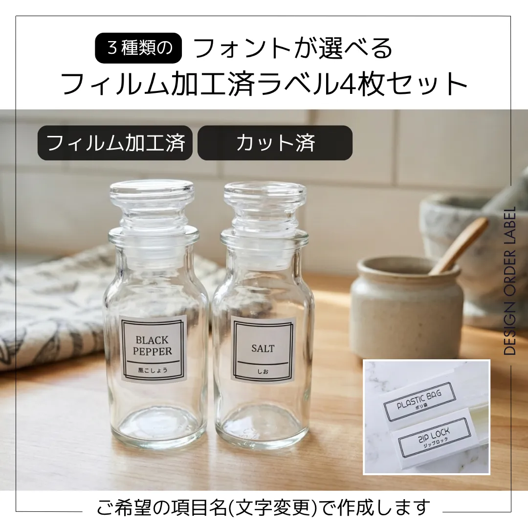 [送料無料] (フィルム加工)+シンプルシリーズ④:シンプル調味料・消耗品ラベルシール 4枚セット