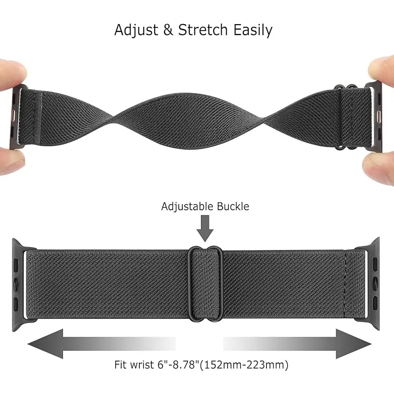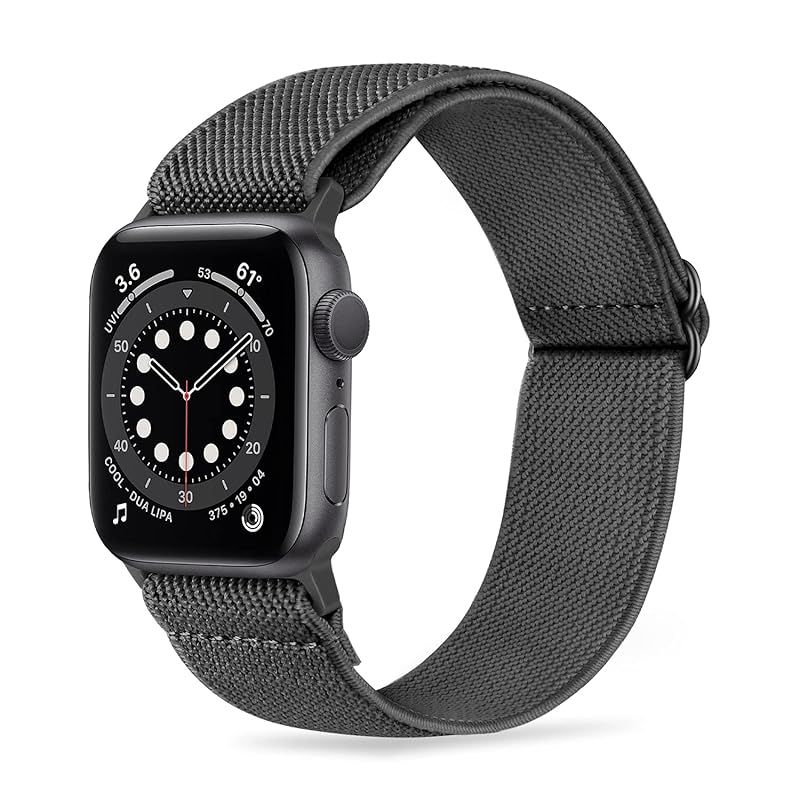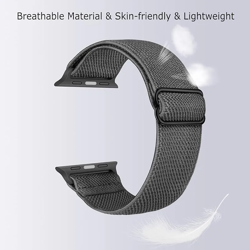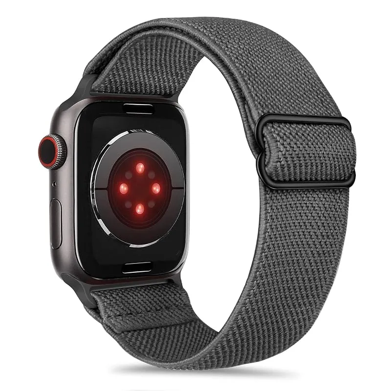 弾性スポーツソロループ コンパチブル Apple Watch バンド 42mm (シリーズ10/11) 41mm 40mm 38mm、ナイロン編組スポーツループ、交換用ベルトApple Watch シリーズ 11 10 9 8 7 6 5 4 3 2 1 SE用 (濃い灰色)