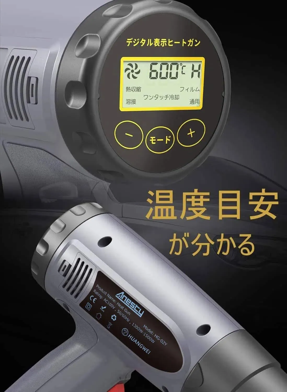 Anesty ヒートガン 液晶に温度調整 熱工具ヒートガン ヒートエアガン 冷却機能 ひーとがん 50-600℃ 2段階風速
