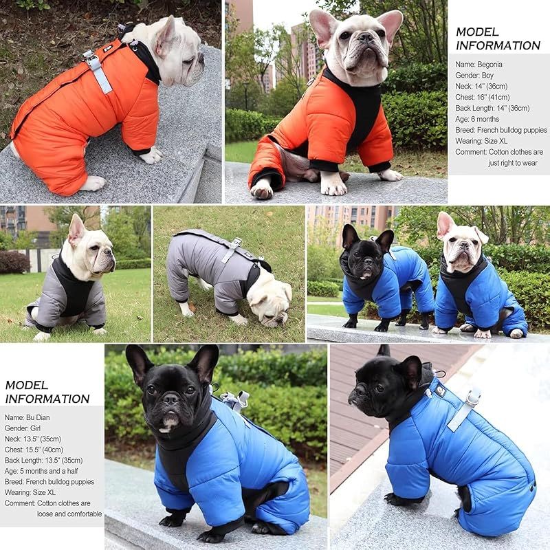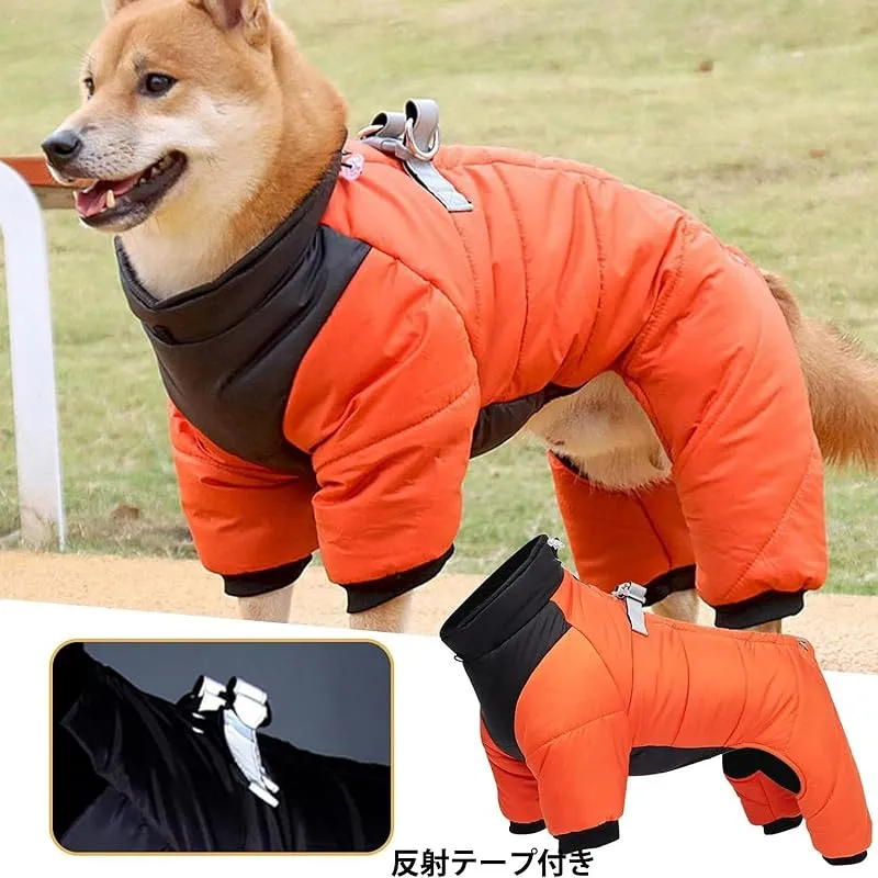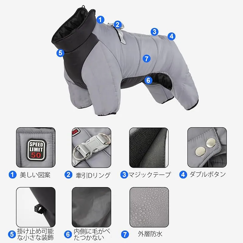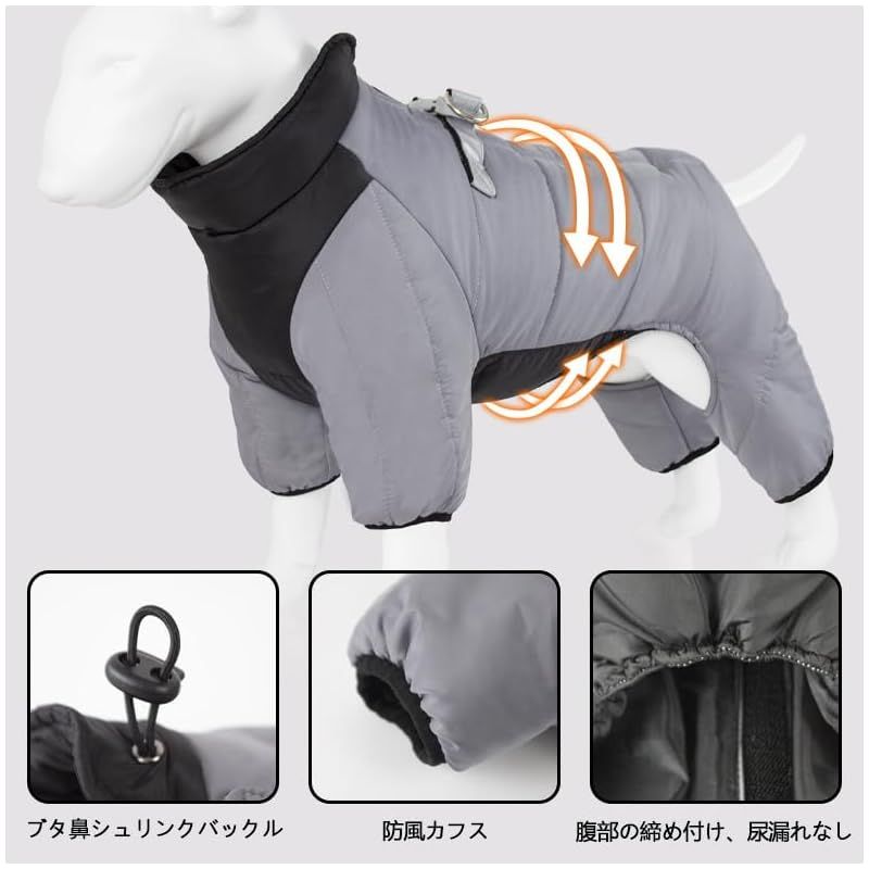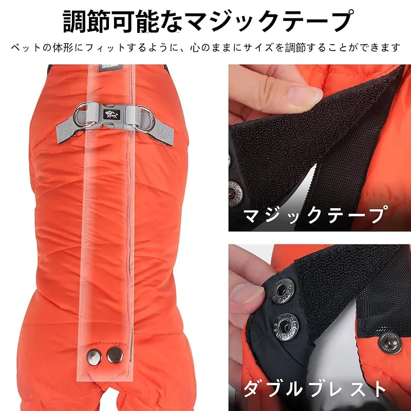 【防水防風】外層は防水加工したポリエステルを採用し、PP綿入れ、肌触りは良いです。足裾にベルクロ入り、更にマジックテープで調節。品種や体重に応じてサイズを選択しないでください。犬を冬の風、雨、雪、湿気から保護し、を寒い天気の中で快適に、暖かく、乾燥させ、特に彼らがアウトドアで遊ぶのが好きな時