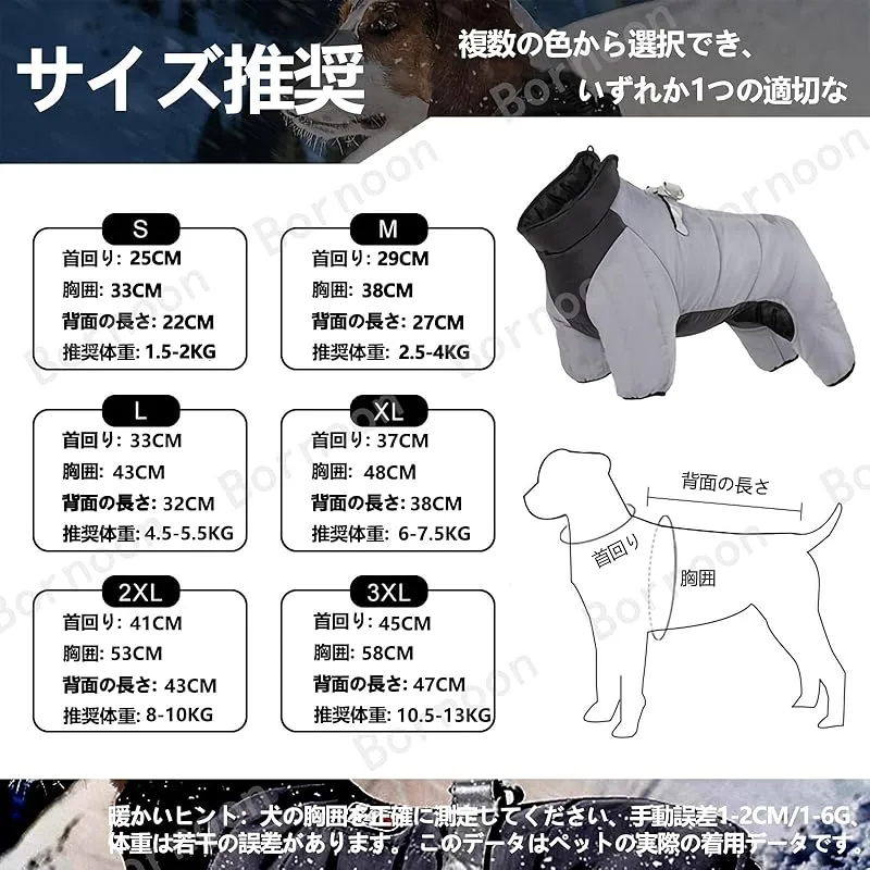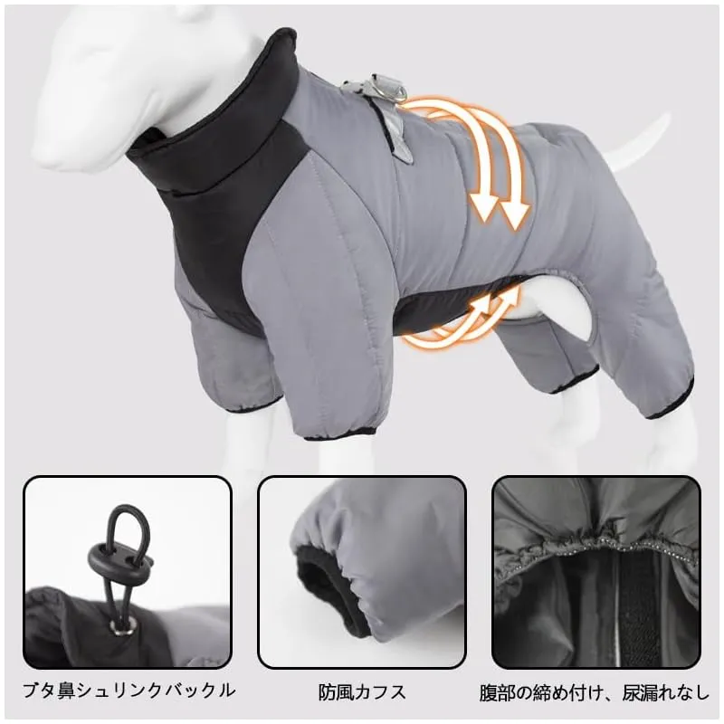 【新品】 Bornoon 犬 服 冬 犬服 綿服コート ジャケット ダウンベスト風ジャケット 背中開き 反射テープ付き ハーネス付き お散歩お出かけ 軽量 四つの足 一体型綿入れを牽引する 厚い 防寒 撥水 防水ジャケット着脱簡単 暖かい ペット服 雪対策 小