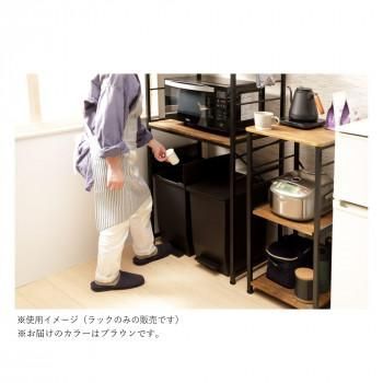 大型レンジも設置可能なラックです。絶妙な高さで調理家電を使いやすく設置可能です。下部スペースは分別ボックス収納に便利なオープンタイプです。