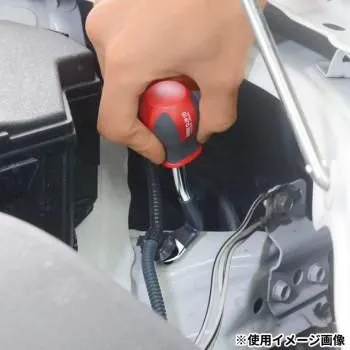 狭く奥まった箇所にあるクリップ外しに便利なスタービータイプ。ワイヤーハーネスのクリップやグロメット外しなどにも便利です。ハンドルをしっかりと握れるエラストマー樹脂を使用。