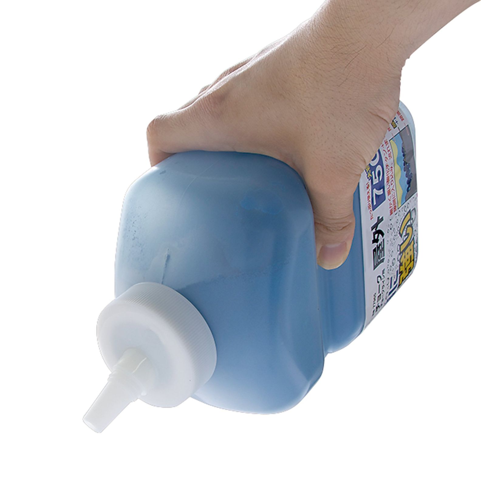 ボトルにくぼみを持たせ、片手で握りやすく注ぎやすいボトル形状。