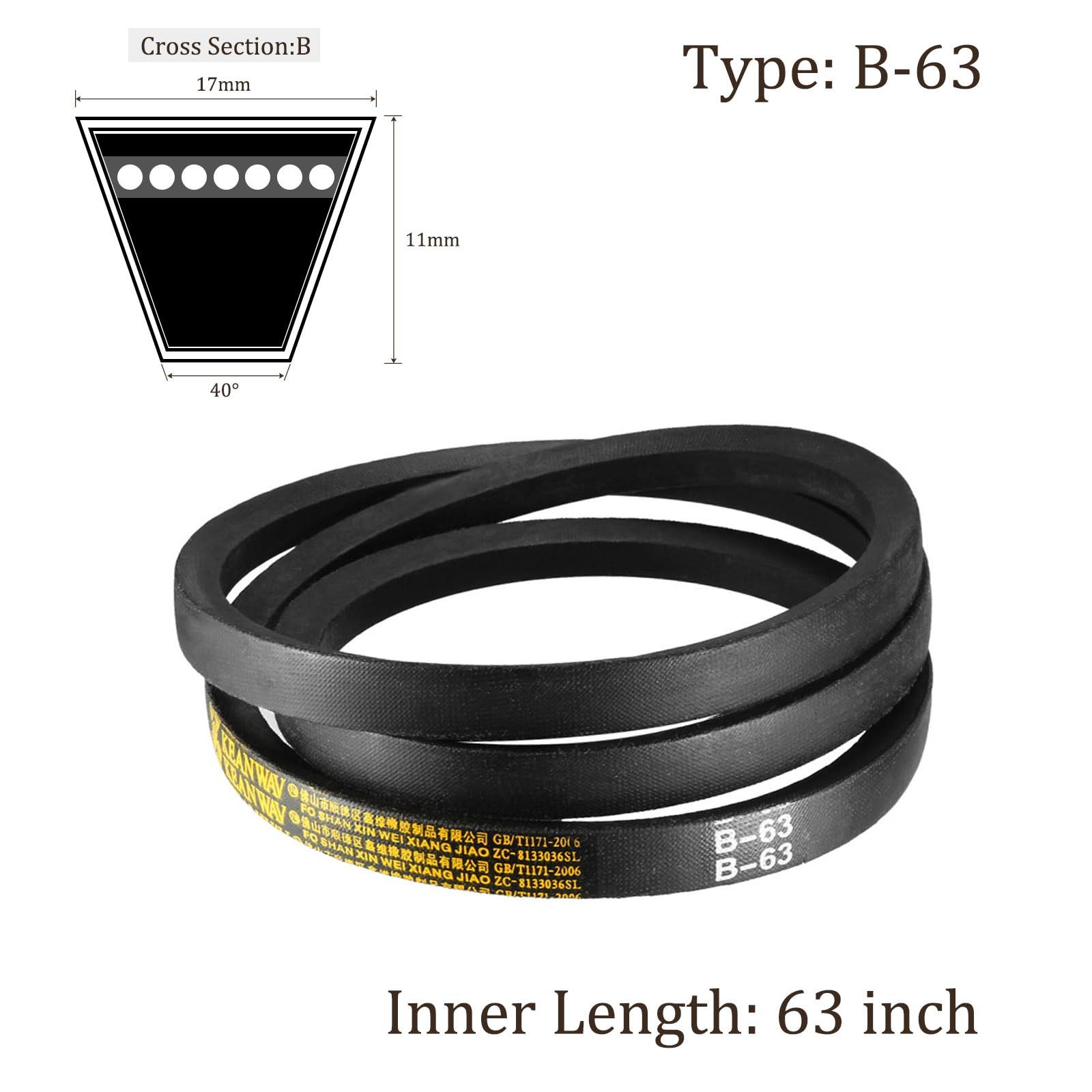 1- パッケージ内容 - 1個 63 内部長さ x 17mm 幅 x 11mm 厚さのBセクションゴムドライブベルト