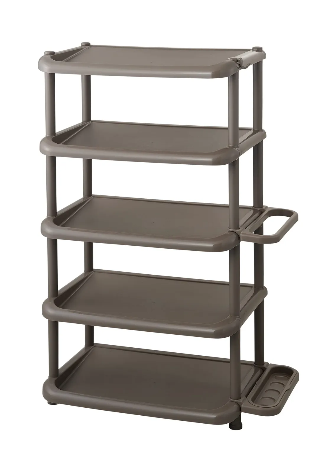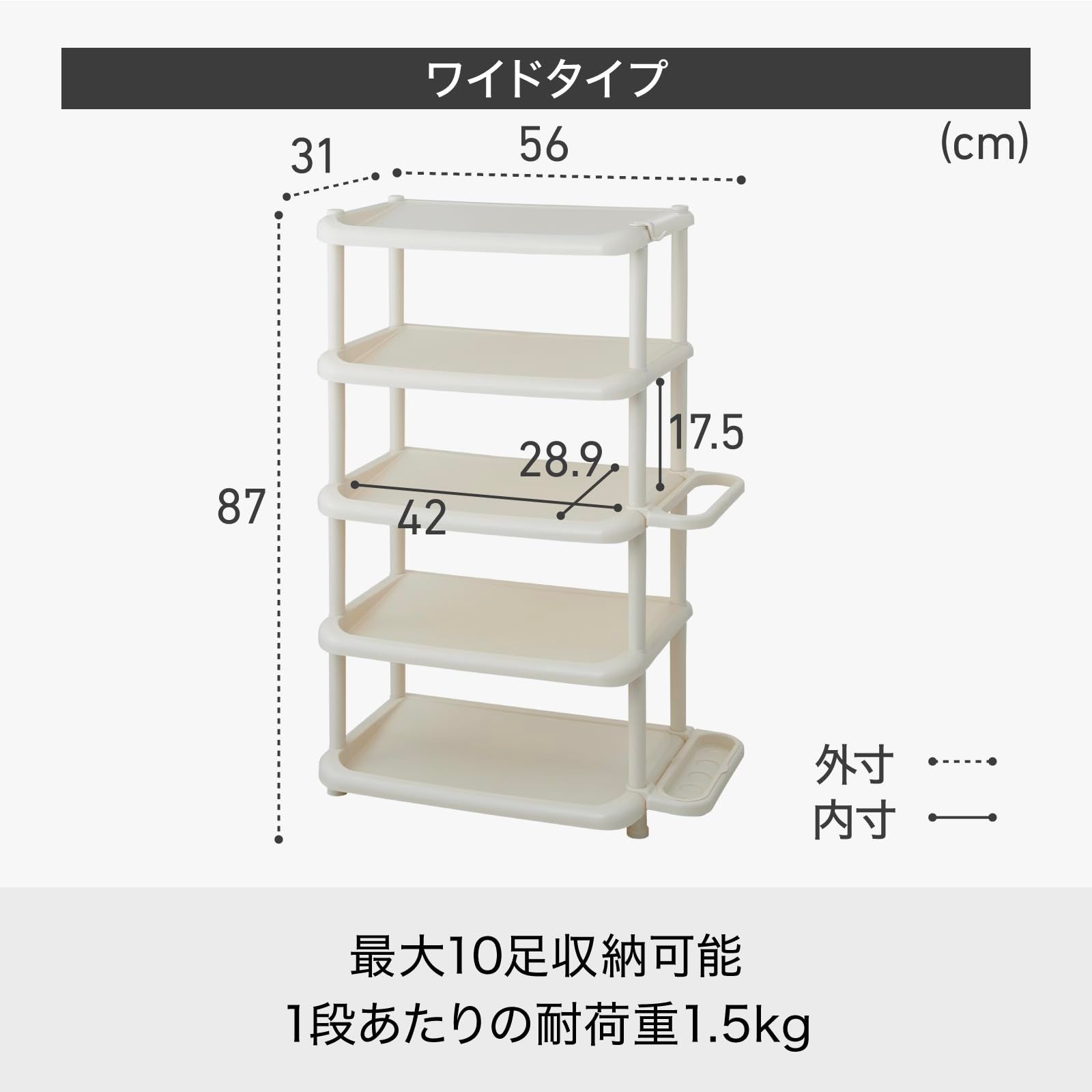 幅560mmのスペースに靴10足と傘5本を収納可能 靴べらやブラシなどがかけられるフック付き。フック、傘立ての位置は左右どちらでもOK 傘立ての水受け皿は取り外せるのでお手入れも簡単