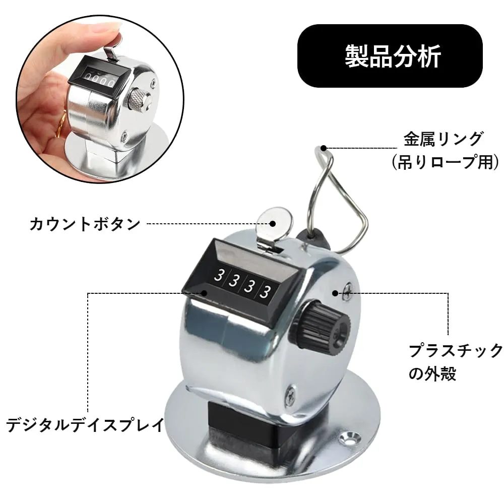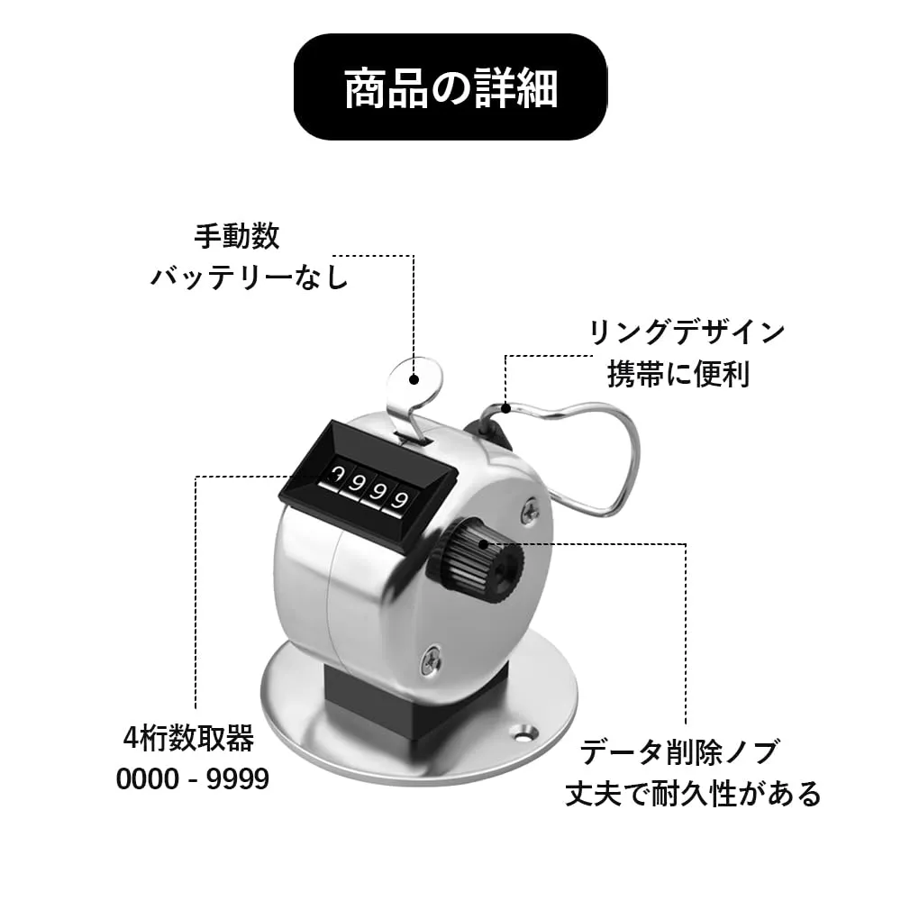 【電池不要】機械式構造で電池不要。4桁の計算機で、親指はハンドルを押すだけでカウントされ、時計回りに回転するだけで再設定で。