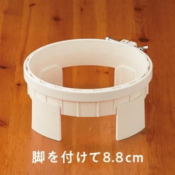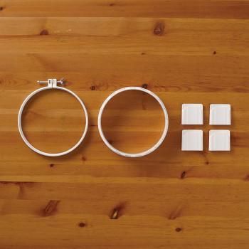 パンチニードルに適した直径18cmの刺しゅう枠。使用する針の長さによってフープの高さを基本の4.5cm、付属の脚を取り付けて8.8cmの2段階で使用できます。クロバー独自のズレ防止機構で生地をしっかりとはさみます。別売のパンチニードル(57-791)、パンチニードル用ファブリック(57-767/57-768)、パンチニードル用ボンド(57-769)と合わせてご使用ください。