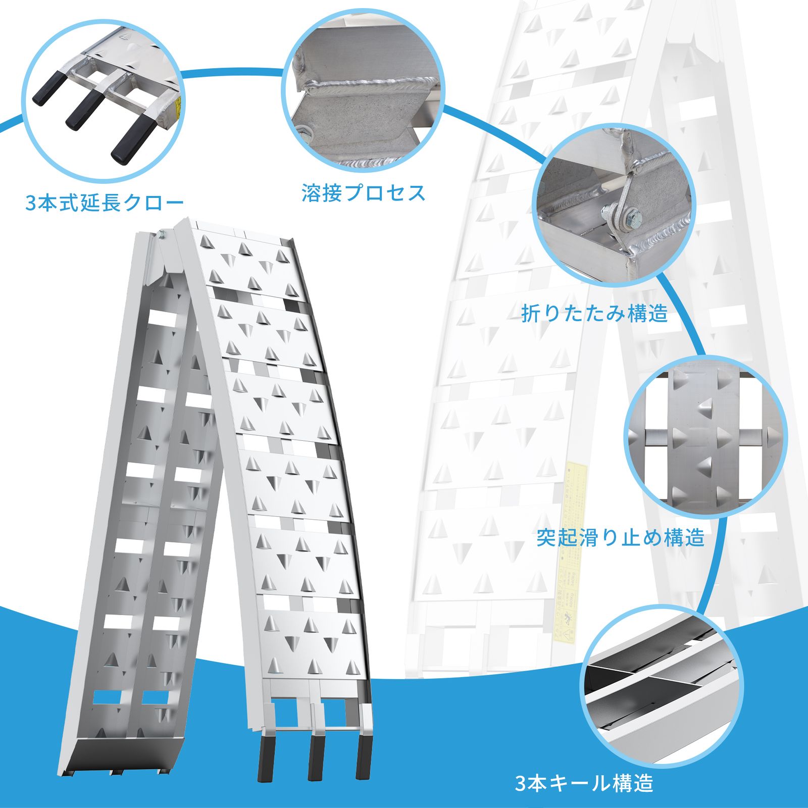 スムーズな乗り降りを実現ステップ間隔が狭く設計されているため、足運びがしやすく、乗り降り・積載作業がスムーズに行えます。走行面にすき間が無いので、足を挟みこむ事が無く女性でも安心して使用できます。