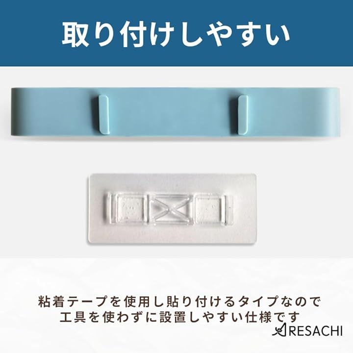 「穴あけ不要で取り付けしやすい粘着式」粘着テープを使用し貼り付けるタイプなので、工具を使わずに設置しやすい仕様です。
