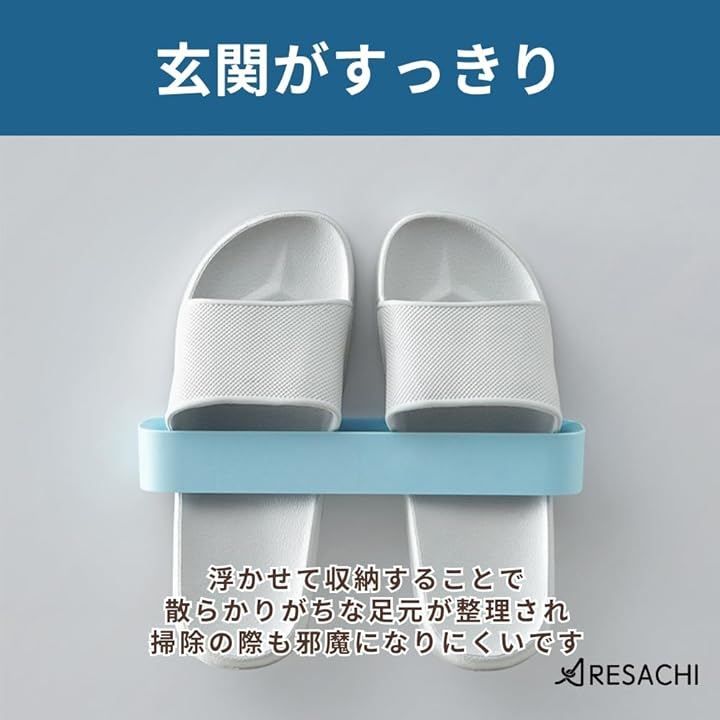 スリッパを浮かせて収納することで、散らかりがちな足元が整理され、掃除の際も邪魔になりにくい点が特長です。