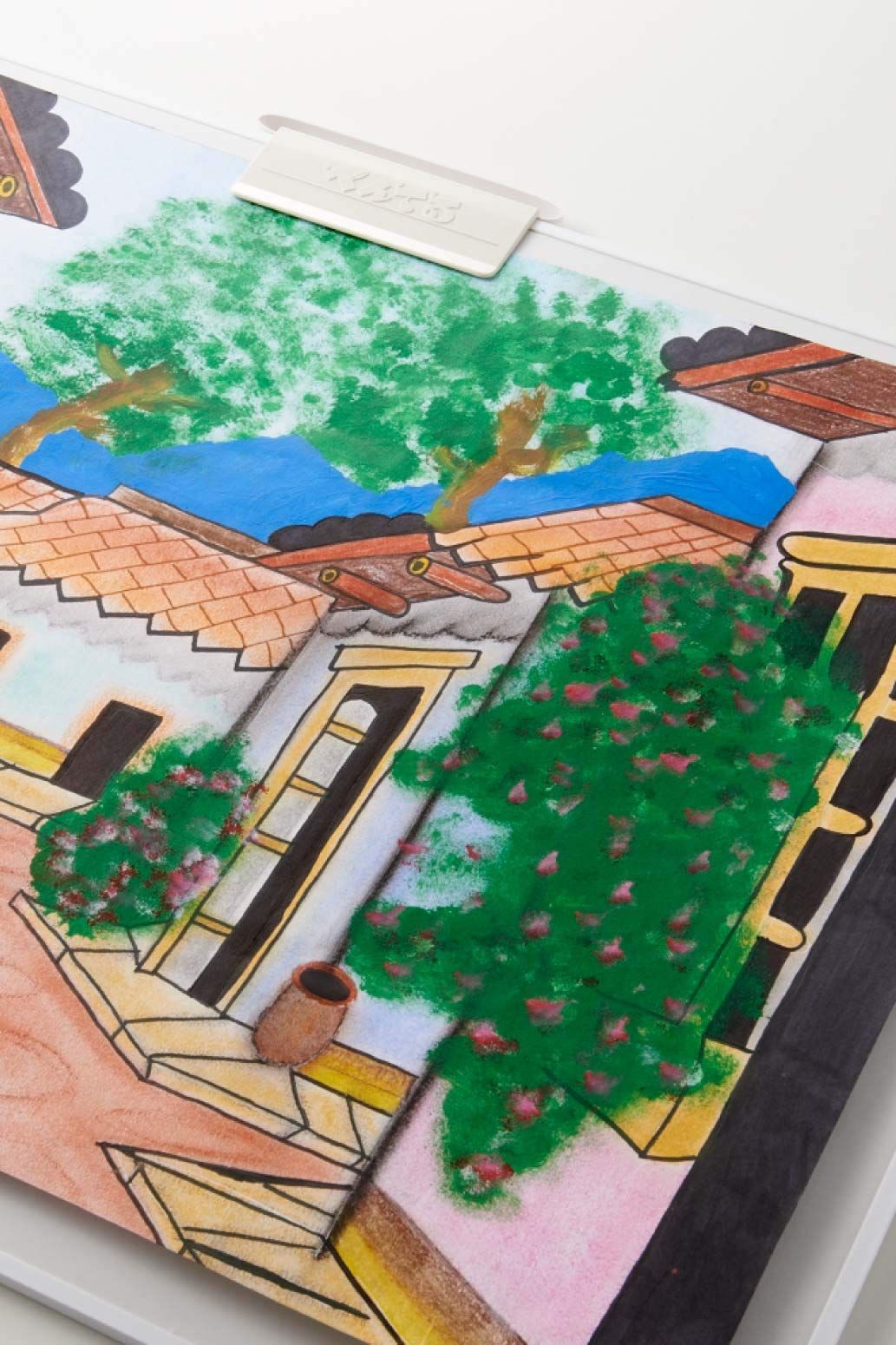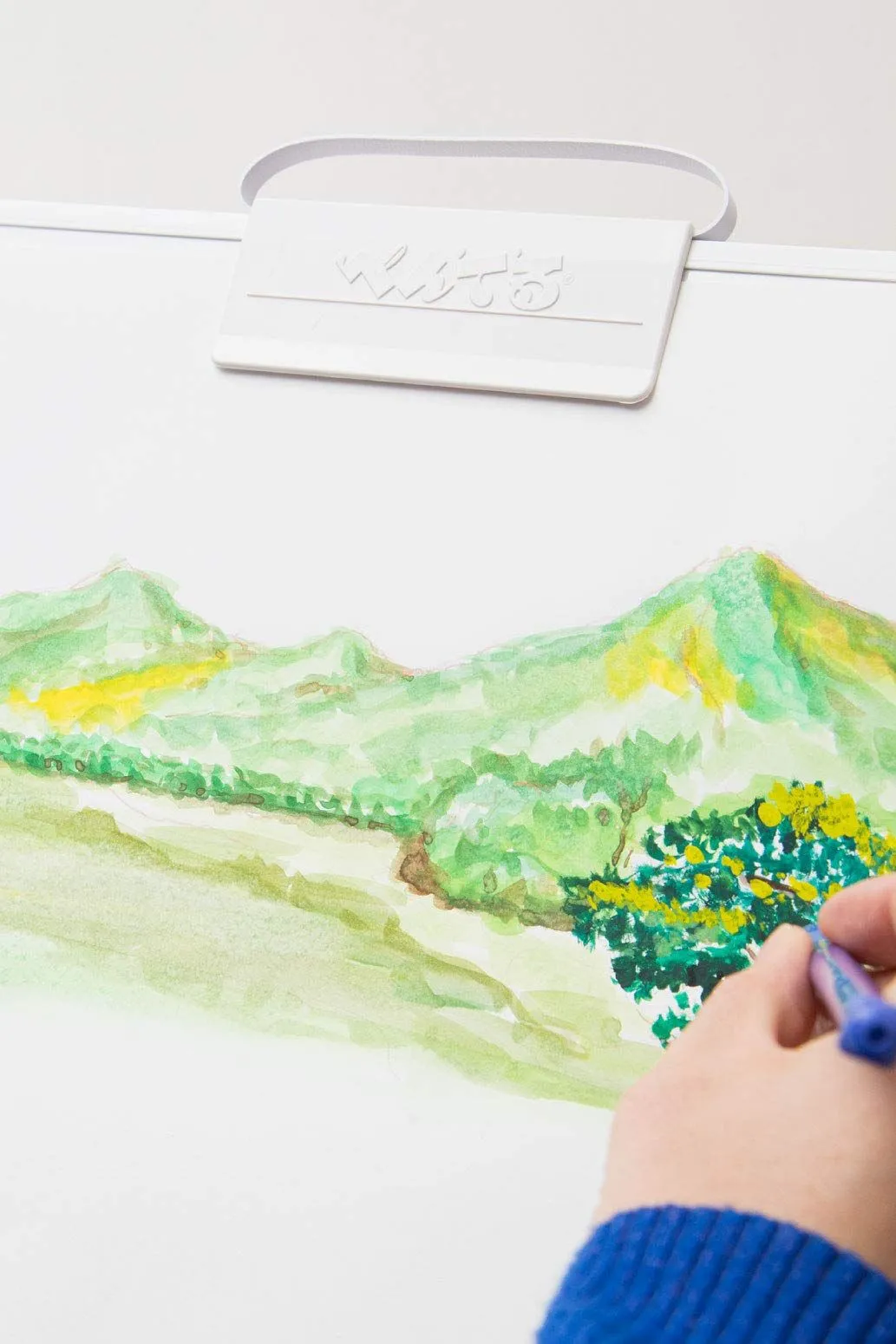 軽量タイプ。軽くて持ち運びが簡単な発泡樹脂製で湿気、水に強い画板。肩掛けヒモ、名前シール付き。