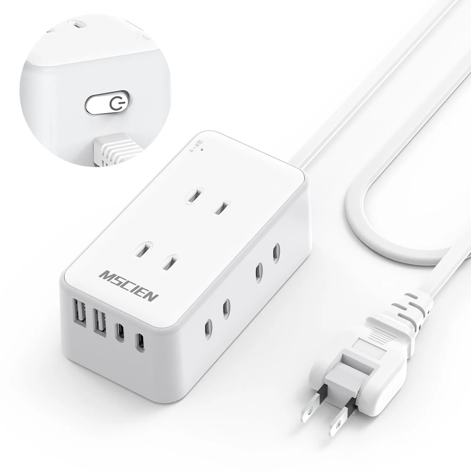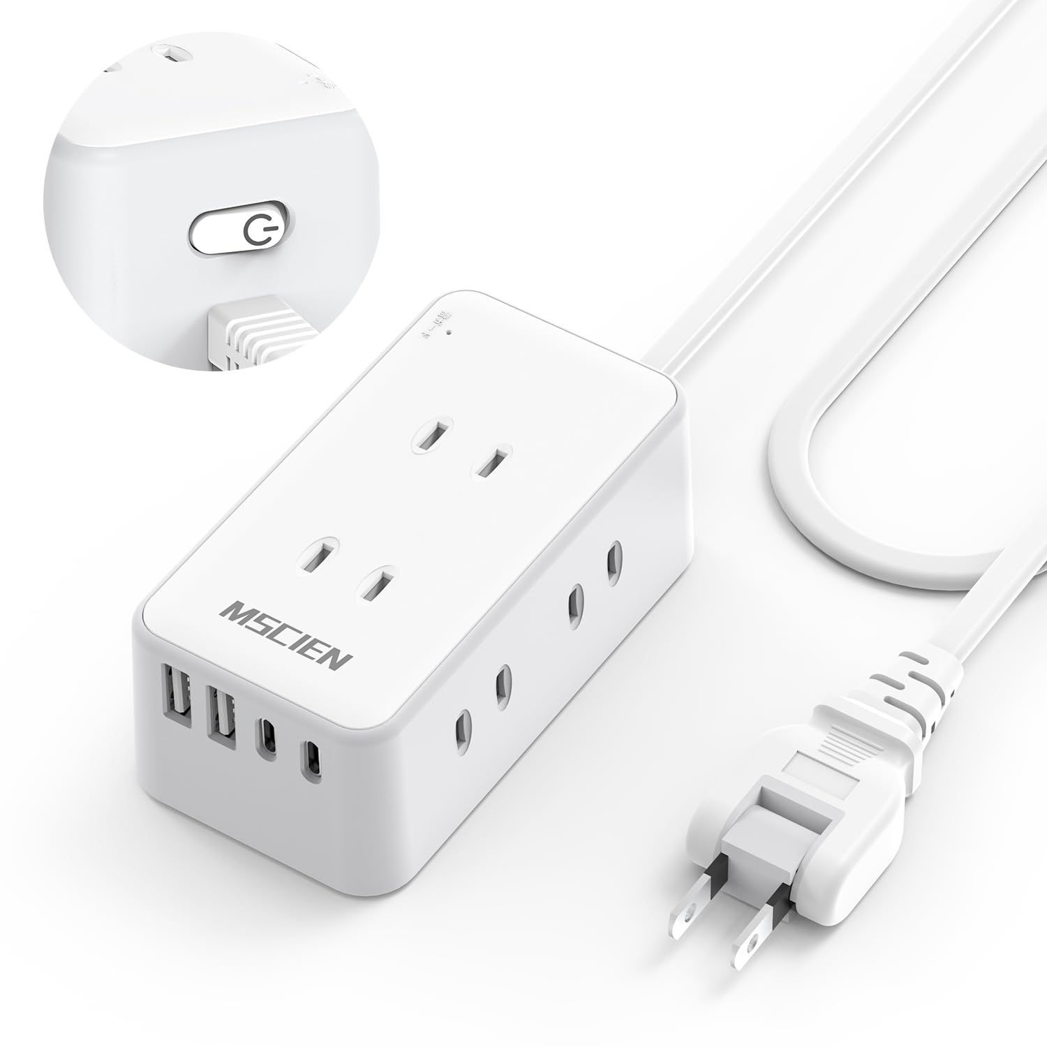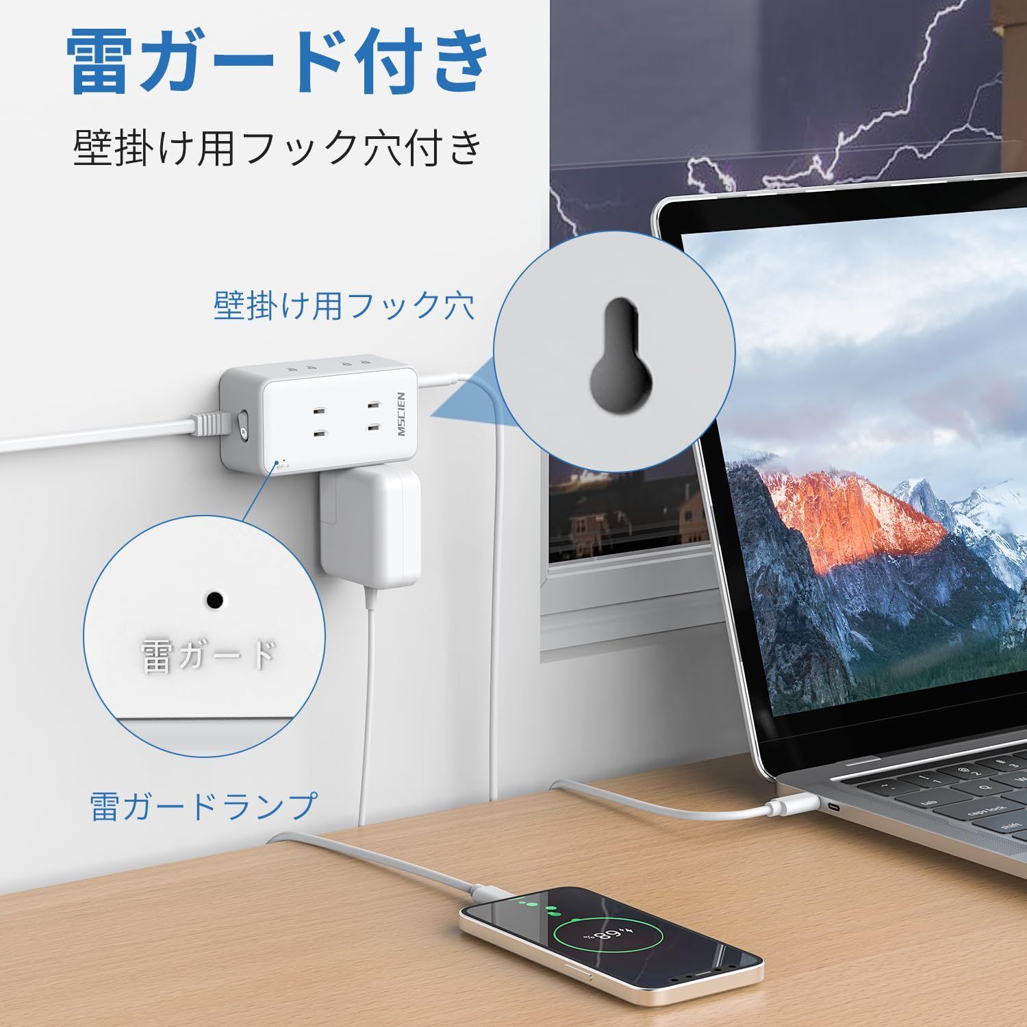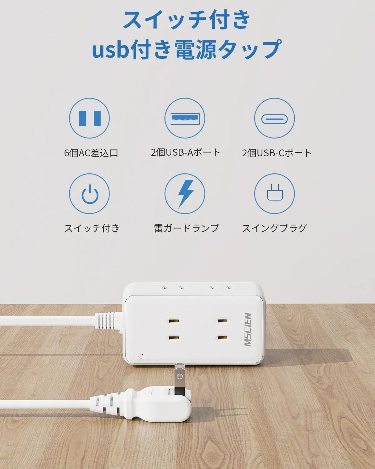 Mscien 延長コード usb コンセント 延長コード 5m スイッチ付き 電源タップ usb付き 6個AC差込口 2個usb-c 2個usb-a コンセントタップ たこあし 分岐 雷ガード oaタップ スイングプラグ 壁掛け 旅行 出張 おしゃれ