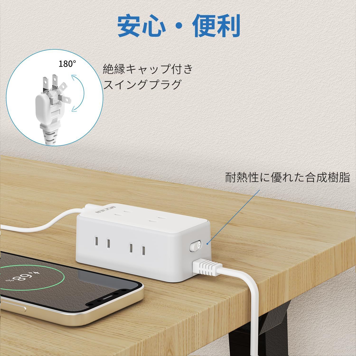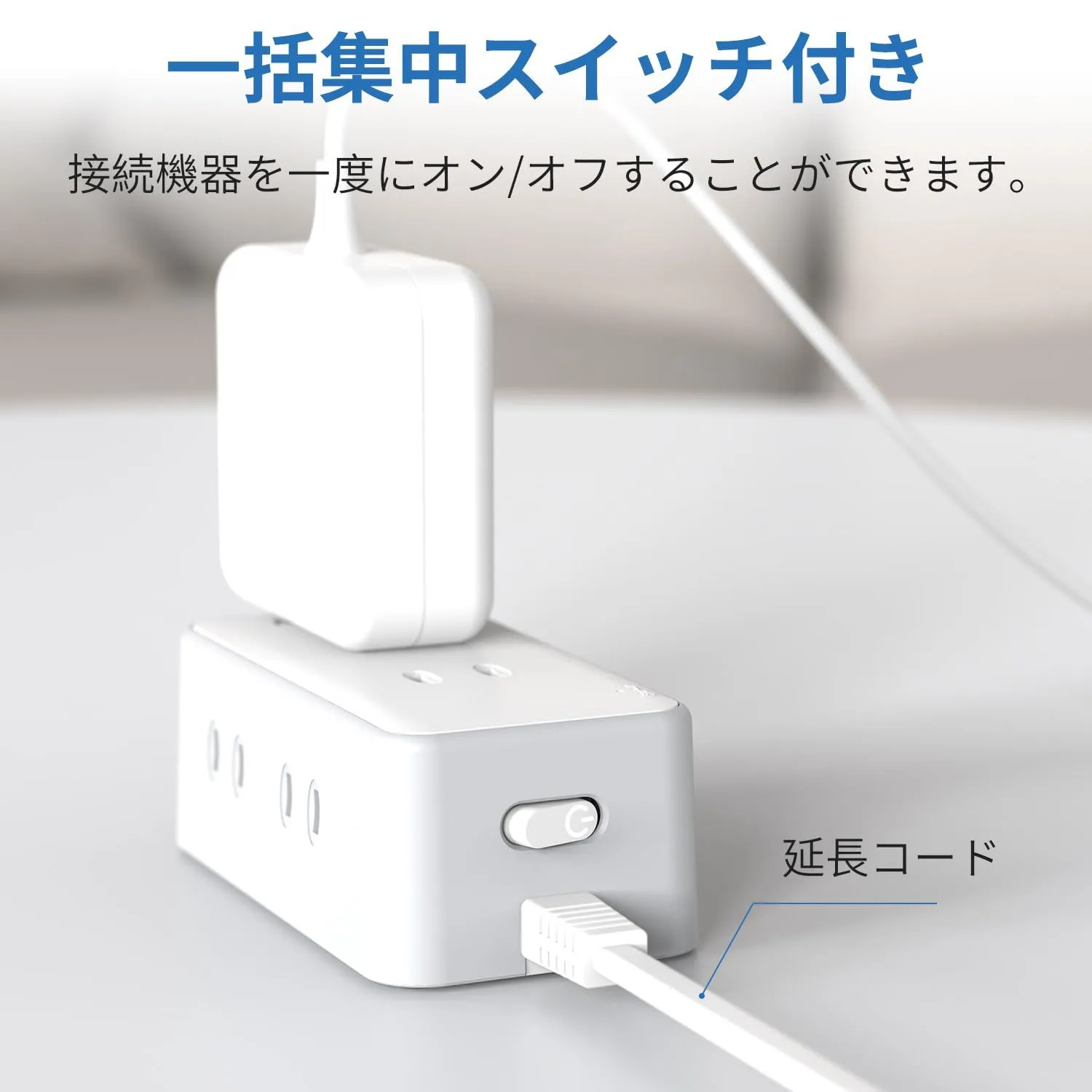 【一台十役】:電源タップは6個AC差込口、2個USB-Cポートと2個USB-Aポートがあります。3面にはAC差込口が2口ずつあり、配線がスッキリです。