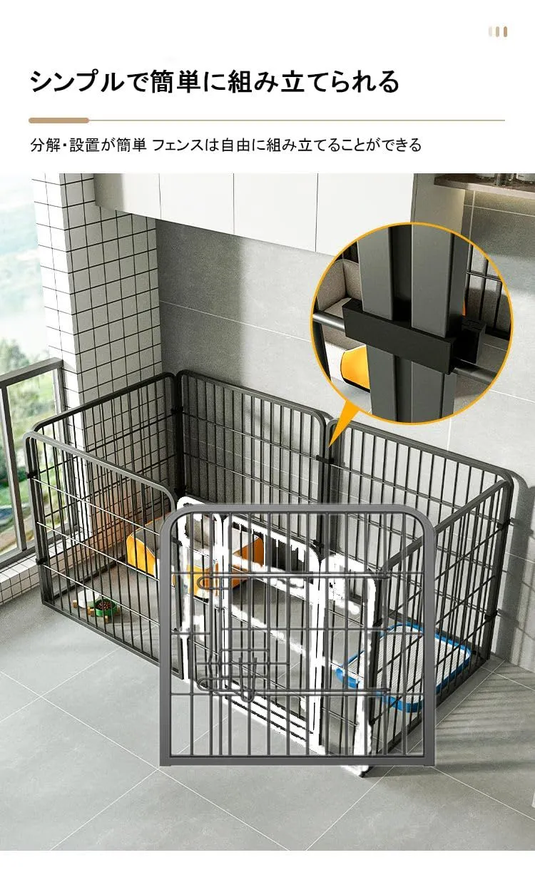 【形を自由にレイアウト・立派な拡張性】 本ペットフェンスは、6枚個別の50幅のメタルパネルを組み合わせて構成されます。 幼犬、小型のペット、 ハムスター、うさぎ、モルモット、フェレットなどの小動物に最適です。 成長途中のワンちゃんを飼育している方や、将来的に数が増える予定なら、拡張性に優れているものが便利です。ペットフェンス自体の形を変えたり、別売りのパーツを追加して拡張できるものなら、ワンちゃんの活動スペースを広げることができ、お部屋の広さにも合わせやすいですよ.