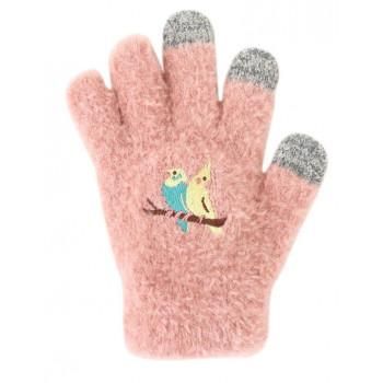 親子で手をつなげばなんというかわいらしさ!親指、人差し指、中指にスマホ対応加工が施されていて、着けたままスマートフォンが操作可能です。もふもふっとしたとっても気持ち良い肌触り。可愛いセキセイインコとオカメインコを刺繍しています。