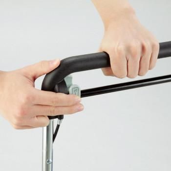 ハンドブレーキ・駐車ブレーキはレバーを押せば、駐車ブレーキがかかる仕組みになっております。ハンドルブレーキを握れば解除します。前輪キャスターは自在45度のみ。大容量収納でお買い物時もたっぷりと収納していただけます。