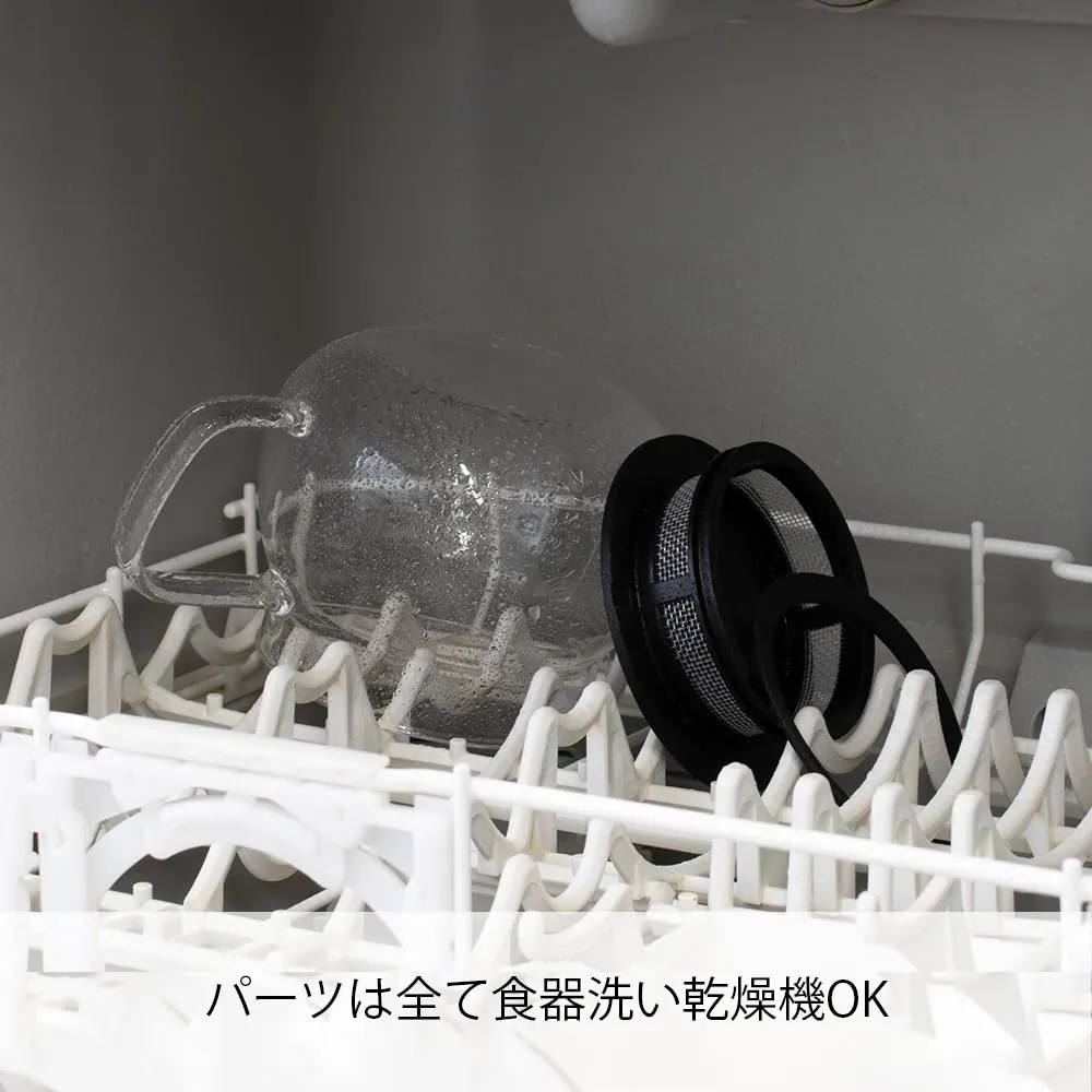 【茶葉をそのまま入れるだけ】茶葉をポットに直接入れてお湯を注ぐだけ。フタの裏側にはメッシュフィルターが付いているため、注ぐときに茶葉をしっかりキャッチします。茶こしを使う必要がなく、シンプルな構造で洗いやすく、毎日気軽に使えます。食洗機も使用可能。