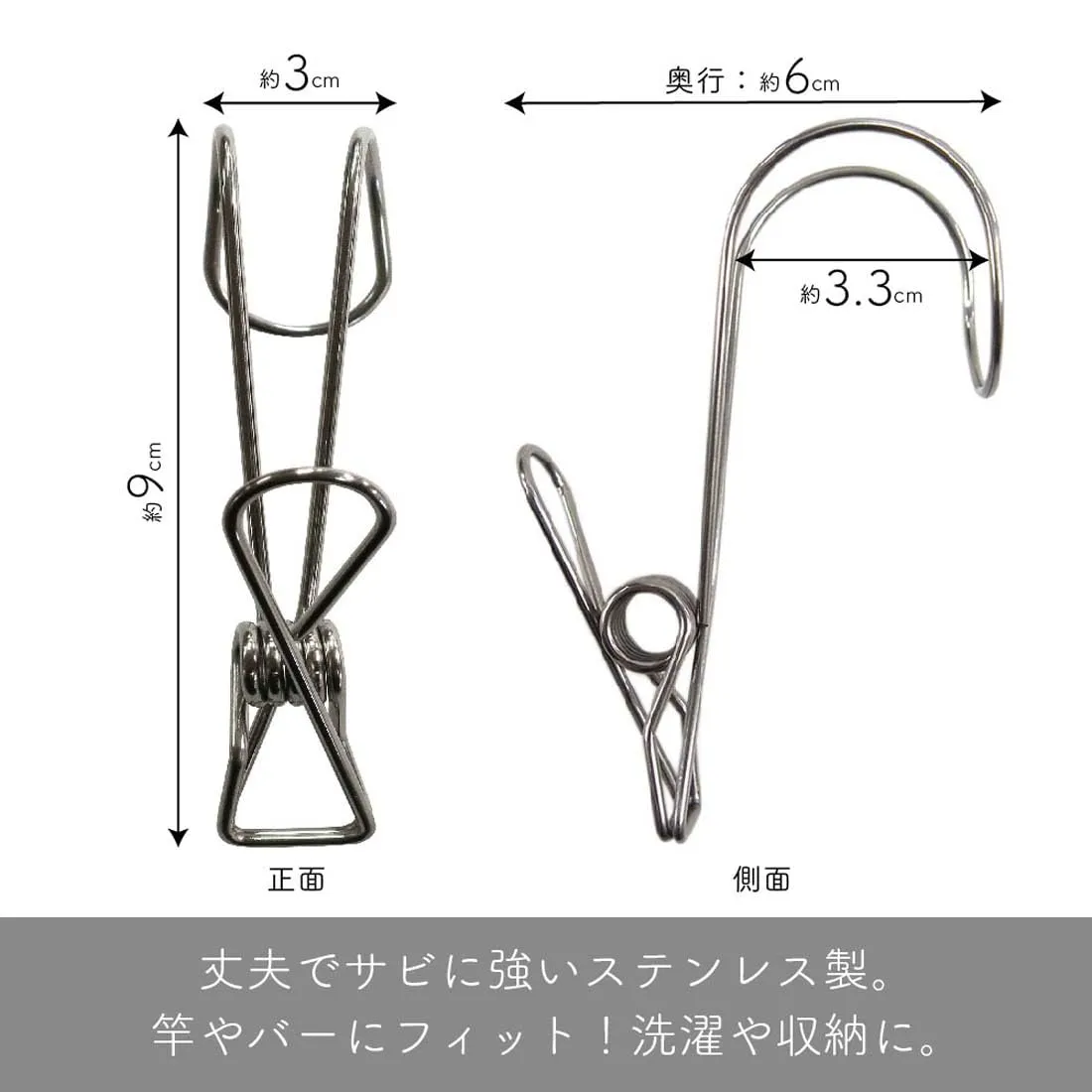 洗濯や収納に使える便利なステンレスピンチ 4個入 2個セット。