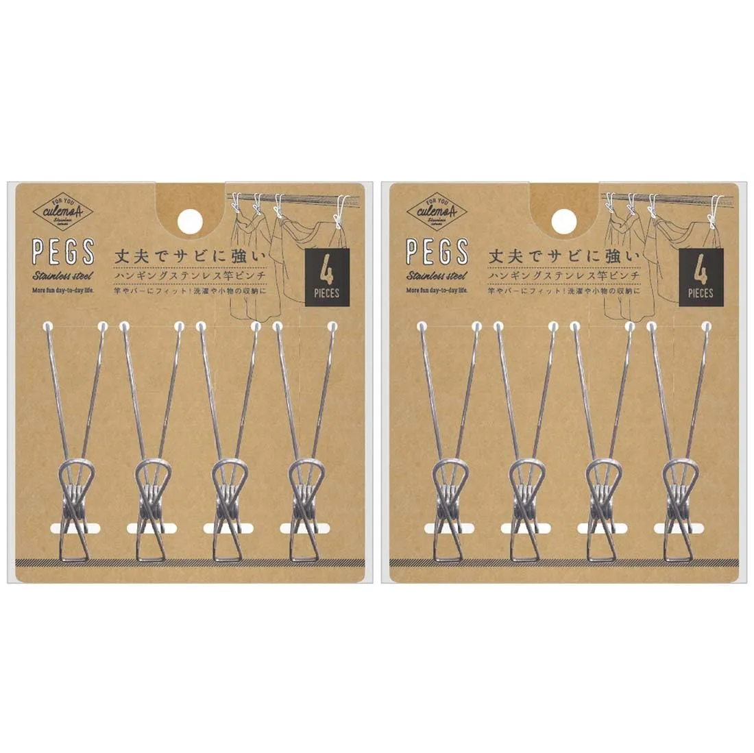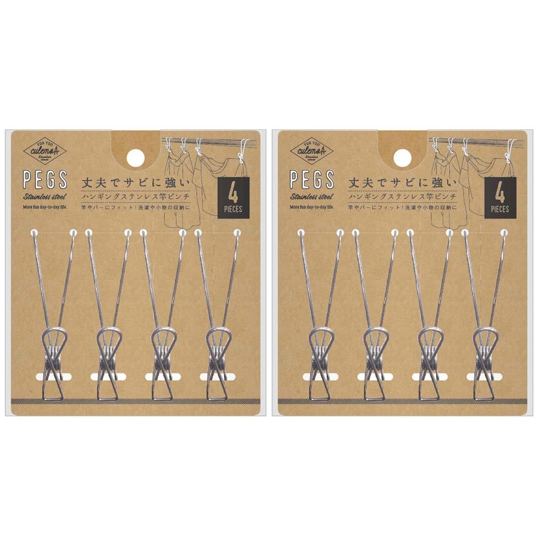 洗濯や収納に使える便利なステンレスピンチ 4個入 2個セット。丈夫でサビに強いステンレスを使用。