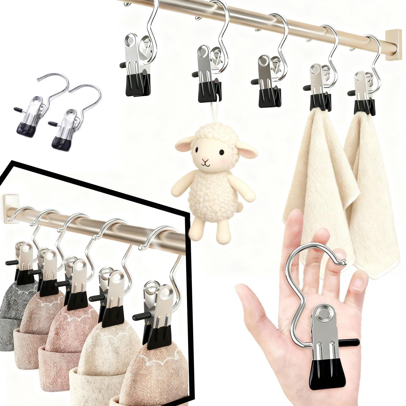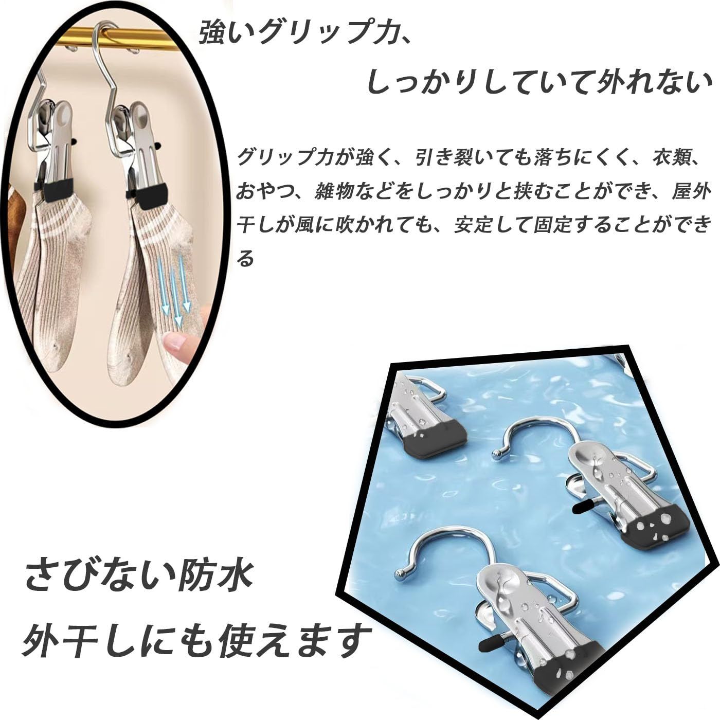 強いグリップ力、しっかりしていて外れない:グリップ力が強く、引き裂いても落ちにくく、衣類、おやつ、雑物などをしっかりと挟むことができ、屋外干しが風に吹かれても、安定して固定することができる、20 MM大ニップ設計で、どんな厚い衣類でも簡単に引っ掛けることができ、多種の厚さの物品に適している