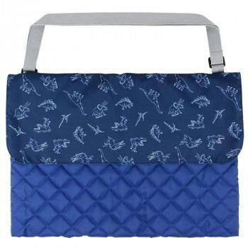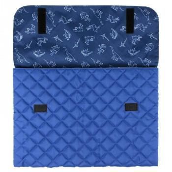 シンプルでかっこいい恐竜のプリント生地と、ふわふわの中綿が入ったキルト生地の防災頭巾バッグです。防災頭巾を入れて、椅子の背もたれに被せて収納することが可能です。