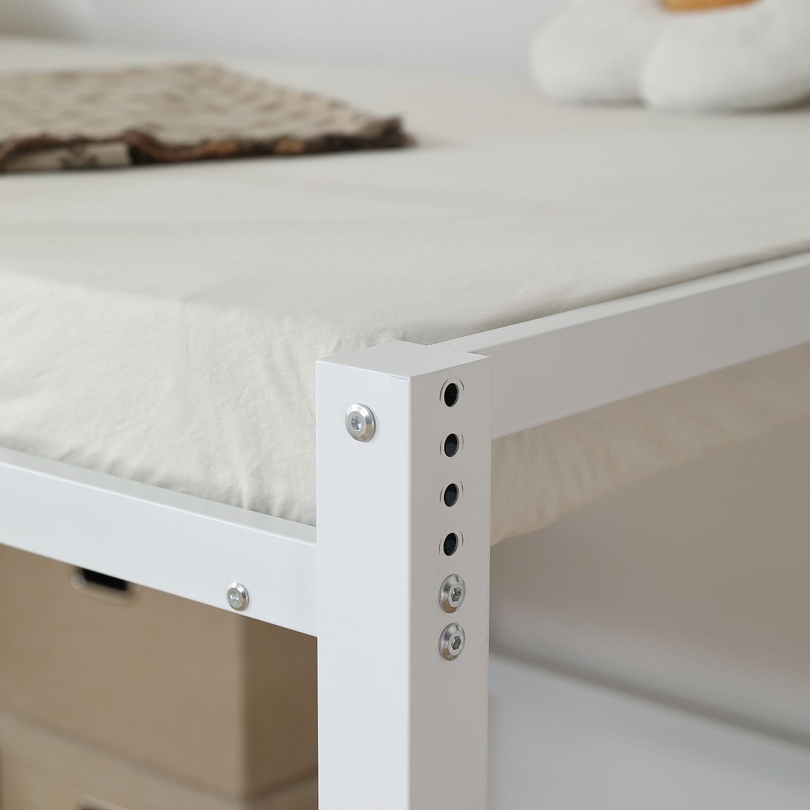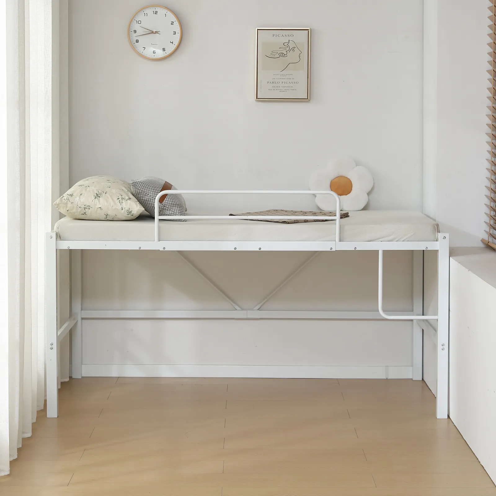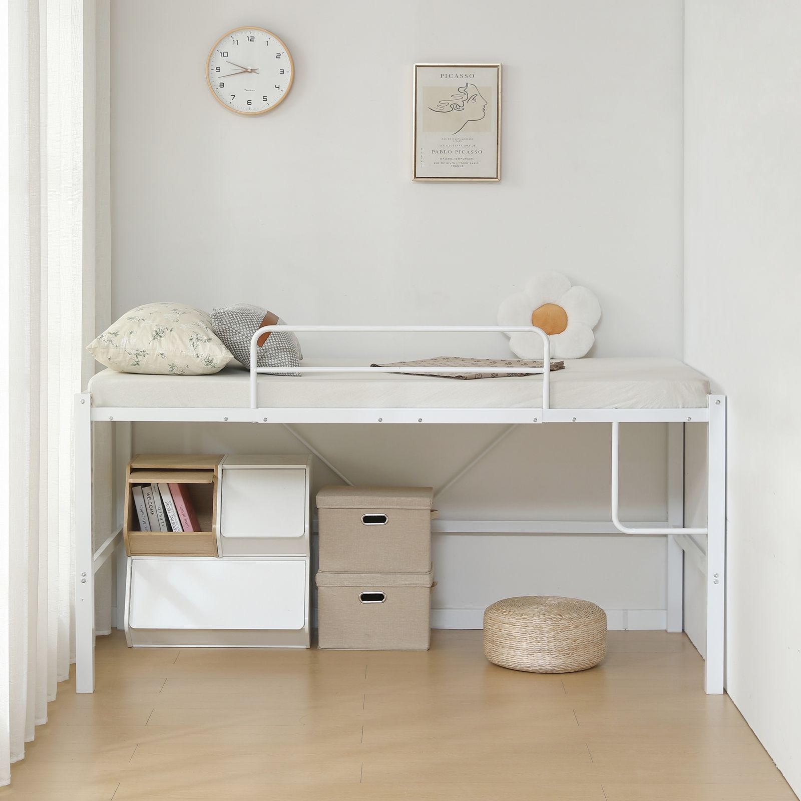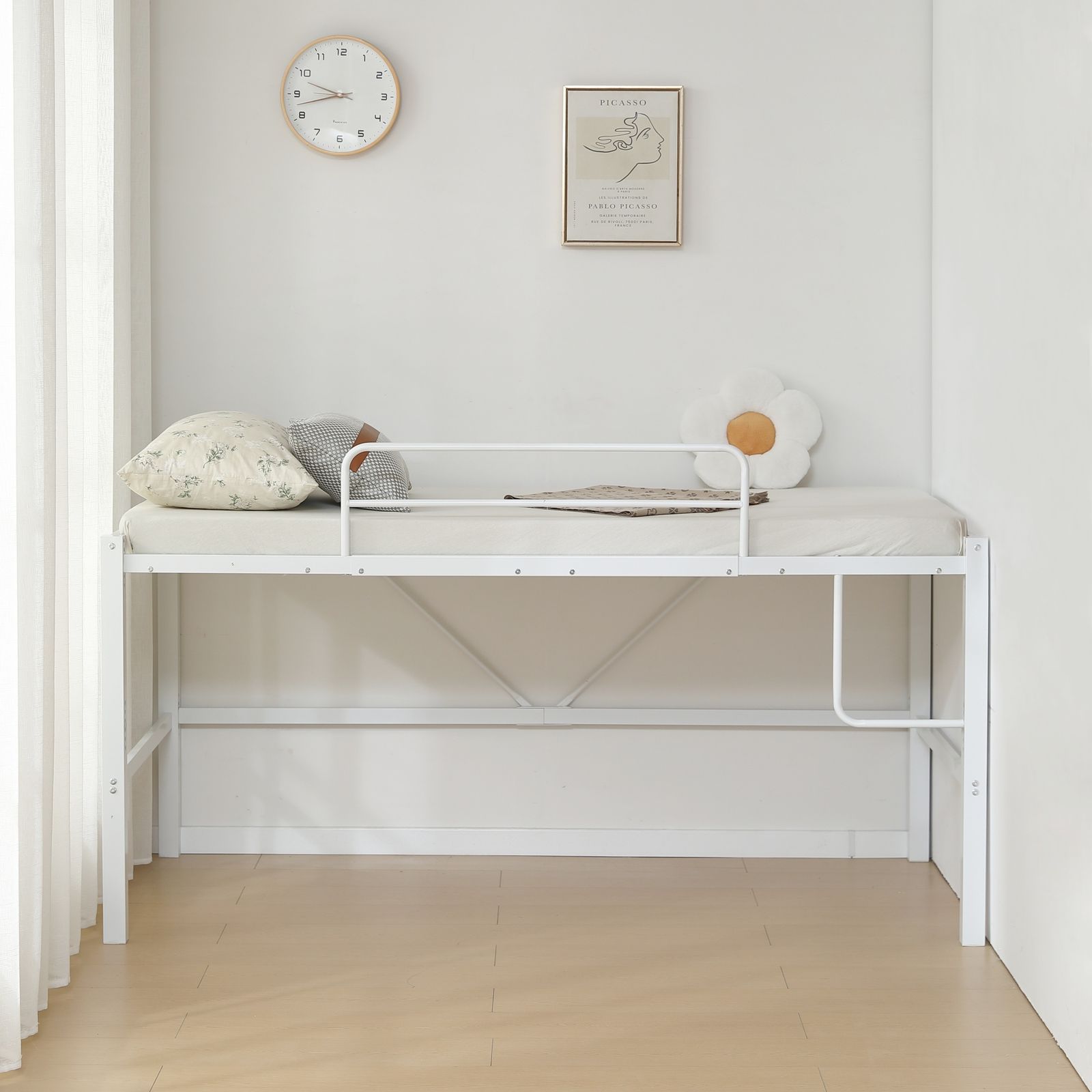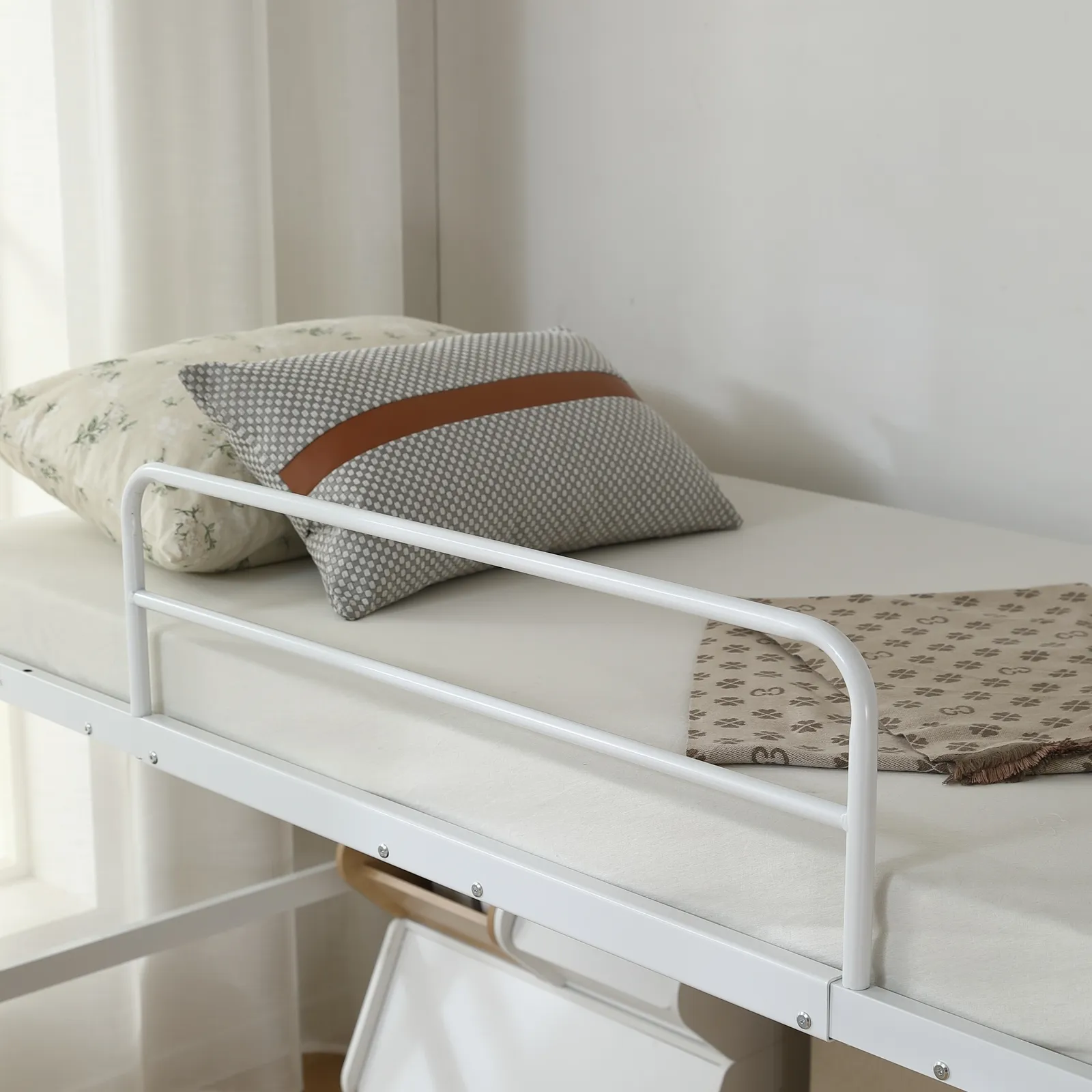 転落防止のサイドフレーム安全性を追求し、落下を防ぐ高いサイドフレームを備え、寝相の悪い方も安心です。サイドフレームは取り外し可能です