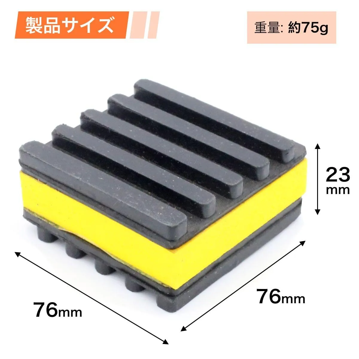 [簡単設置] 家具・家電の下に敷くだけで防振・防音・防傷対策が可能なゴム製防振マット。7.6×7.6cm、厚み2.3cm、重量約75gと手軽に持ち運びでき、場所を選ばず簡単に設置可能;