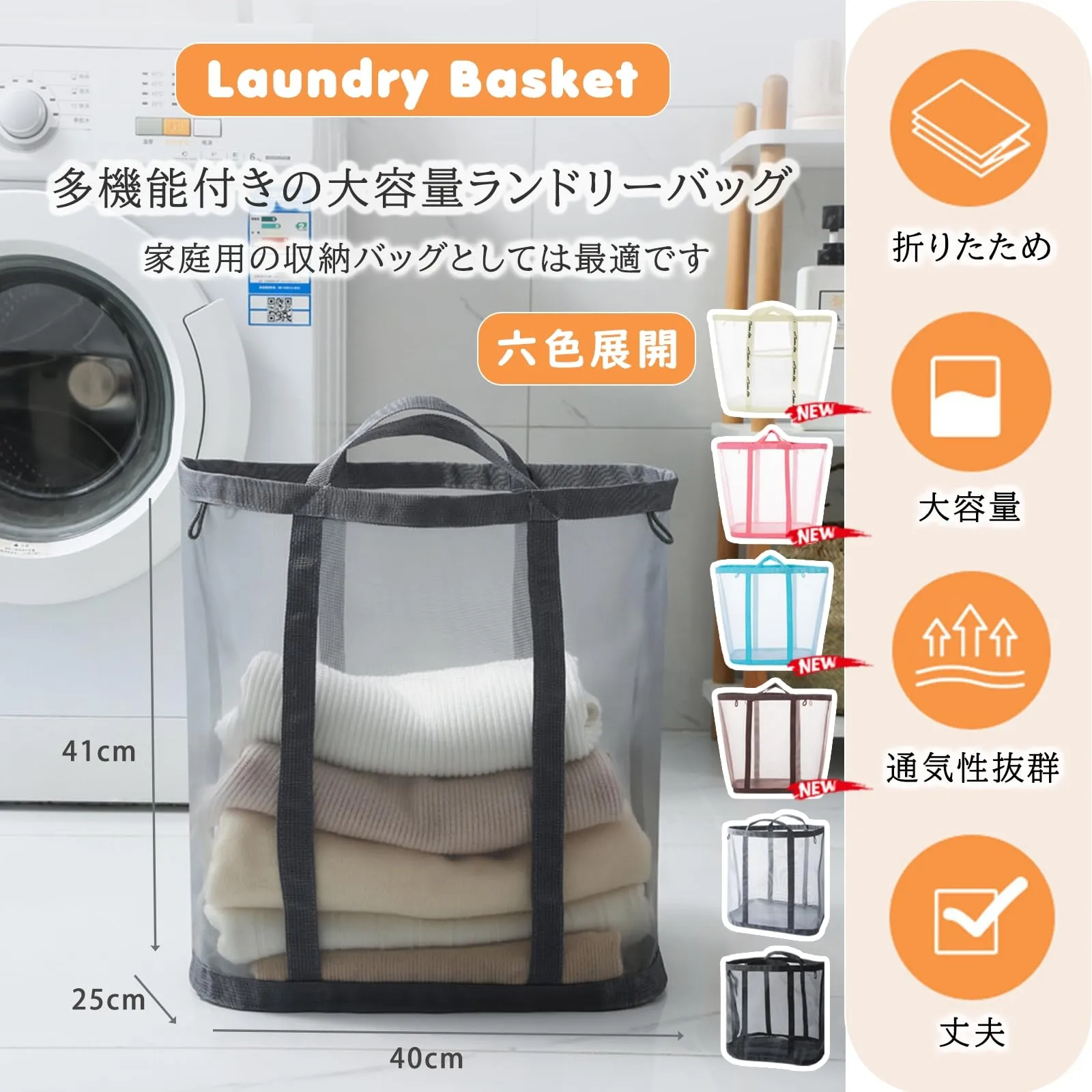 【幅広く活躍する収納バッグ】このメッシュ洗濯かごは、衣類、寝具、ベビーアイテム、スポーツ用品、おもちゃなどを収納できます。家庭用の収納バッグとしては最適です。浴室、寝室、ジム、旅行、温泉、自動車、海辺など様々なシーンに活躍します。また、エコバッグ、プールバッグとしてもご使用いただけます。