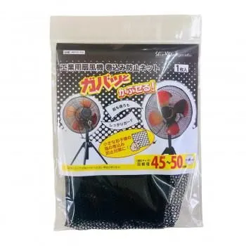 工業用扇風機の巻き込み防止ネットです。羽根径45~50cmまでの扇風機に取り付けができます。裏まで被せてひもで結ぶだけで取り付けられます。