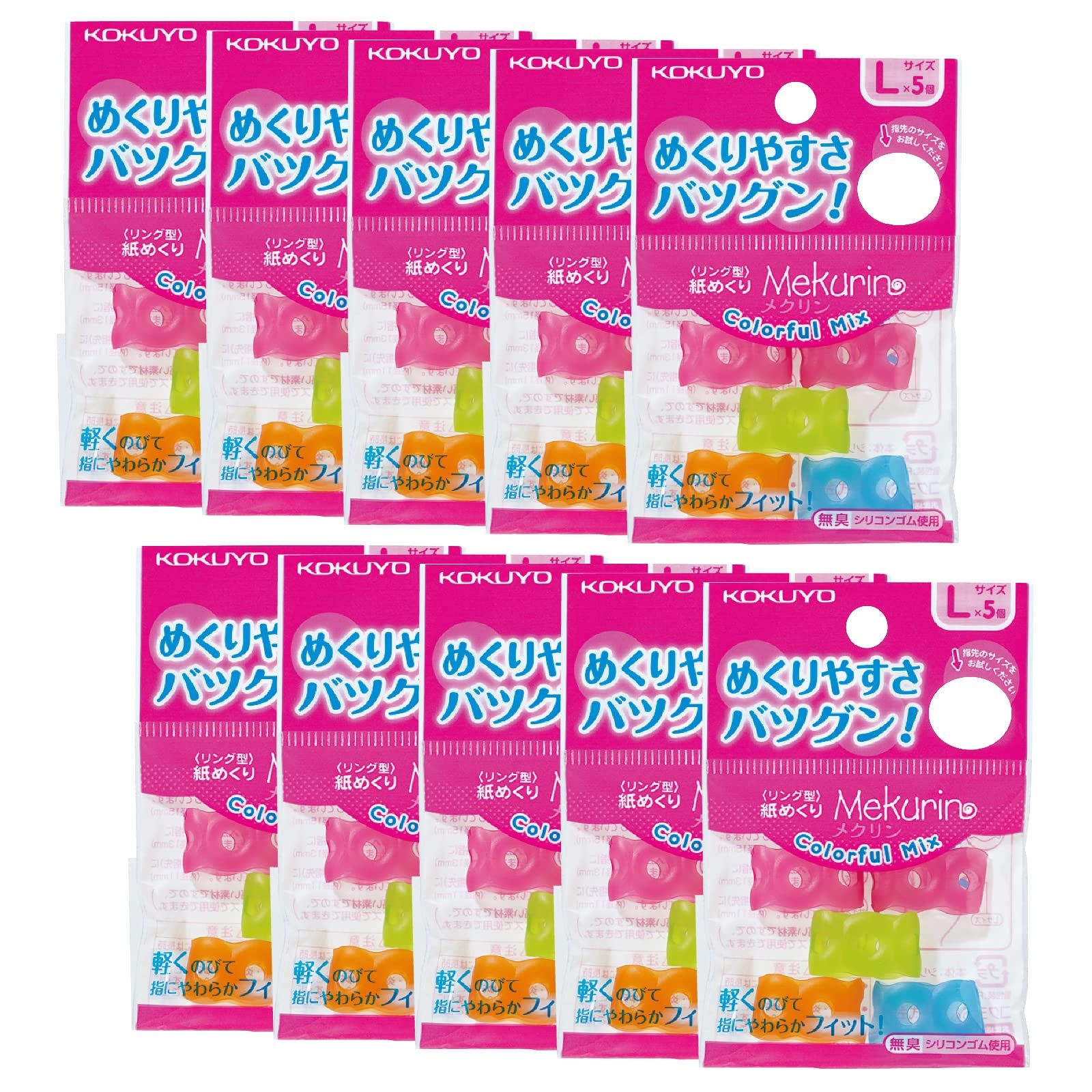 コクヨ 紙めくり メクリン リング型 カラフルミックス 5個入 Lサイズ 10パックセット メク-C22X10