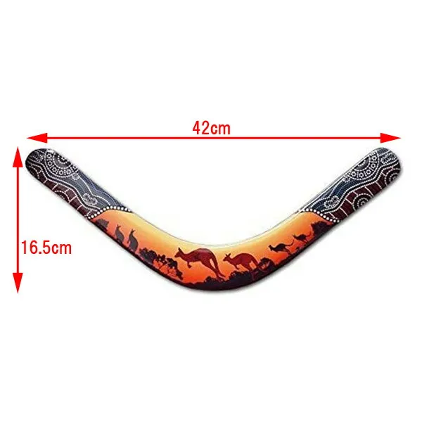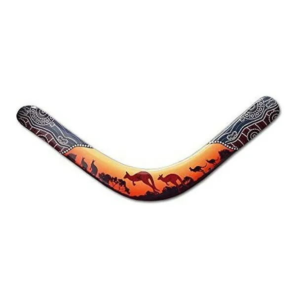 木製で、アボリジニがデザインしたカンガルーイラストのオーストラリアンなブーメラン!
