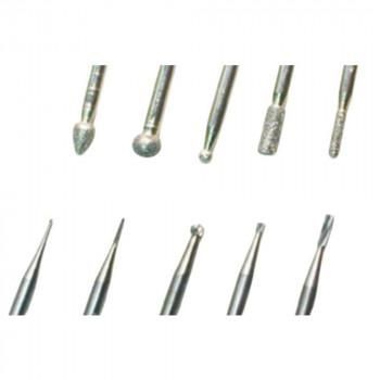 先端部が0.8~2mm径のミニヤスリ5本と、先端部が2~4mm径のダイヤモンド砥石5本の10本セットです。