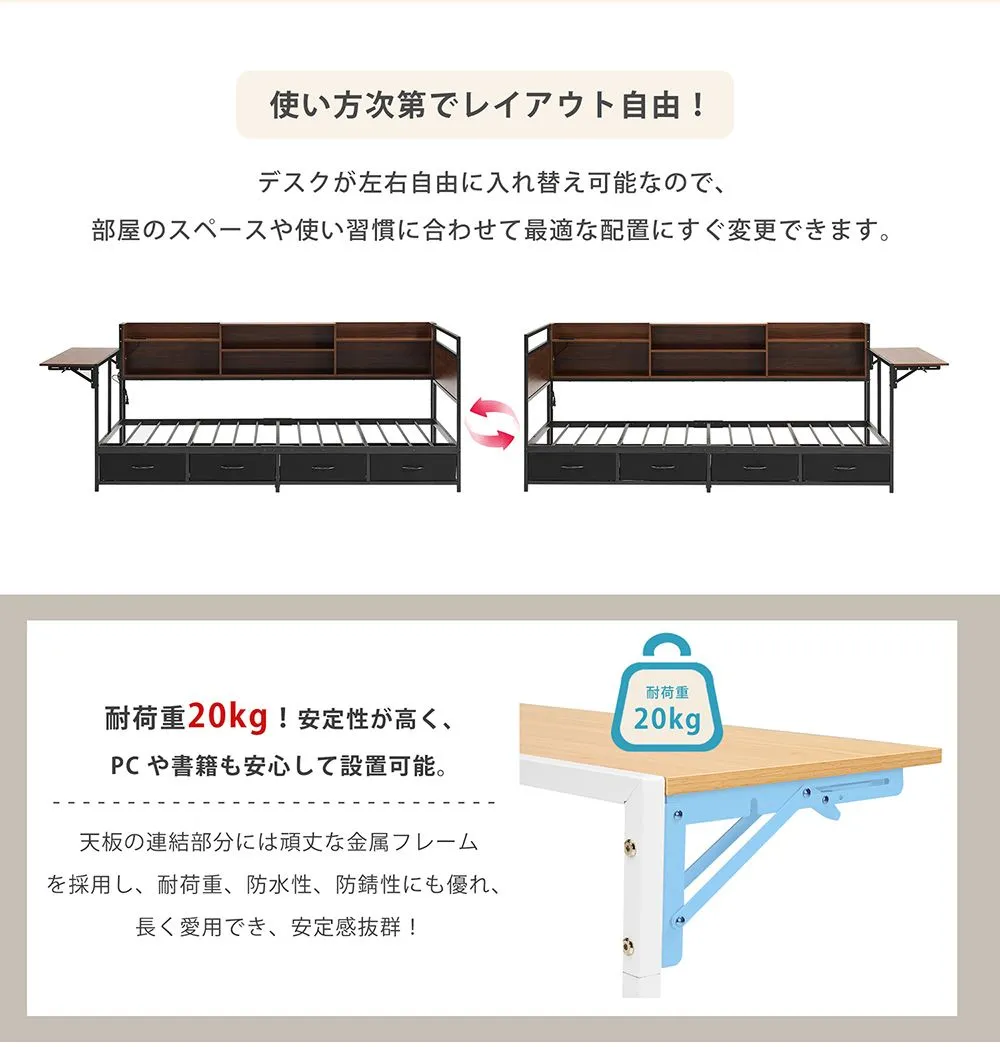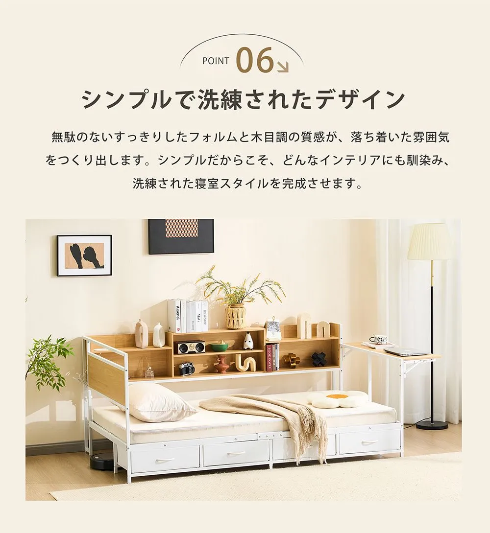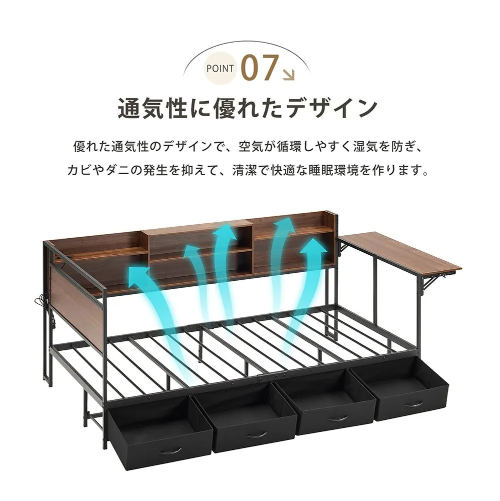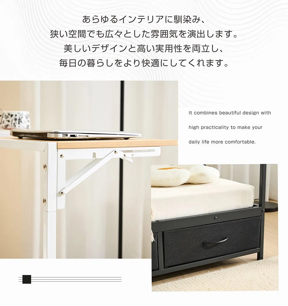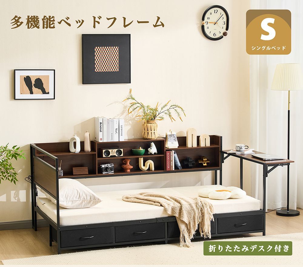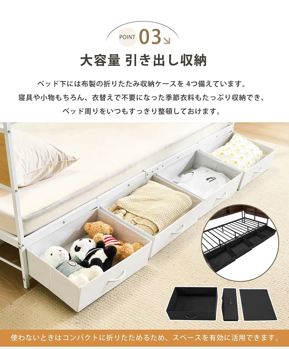 【全店7%OFFクーポン!】システムベッド 頑丈 シングル 引き出し付き 折りたたみデスク付き ロータイプ 子供ベッド コンセント付き 宮付き 収納棚付き 北欧風 大人 一人暮らし ベッド ホワイト ブラック 省スペース システム