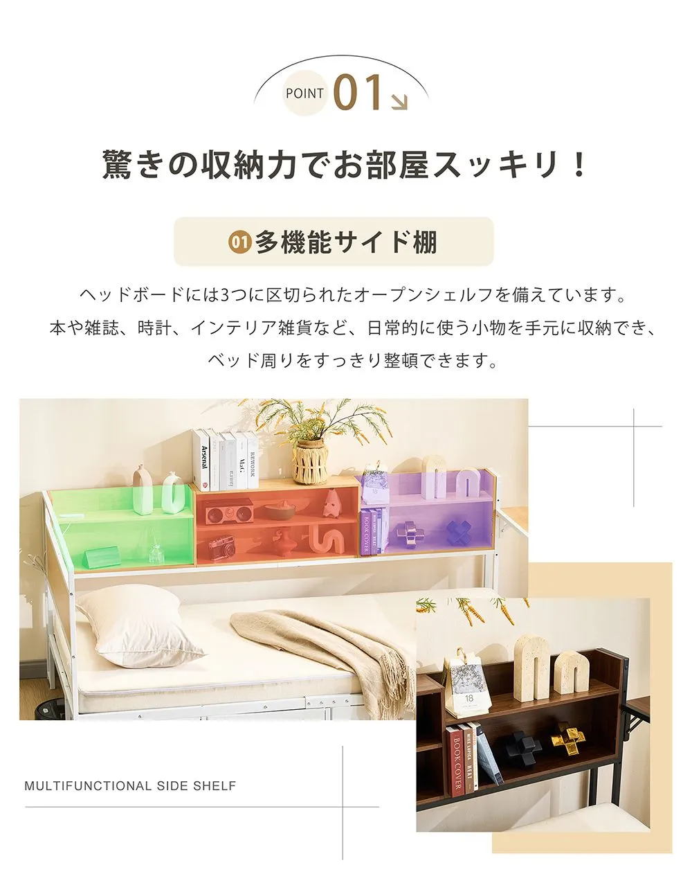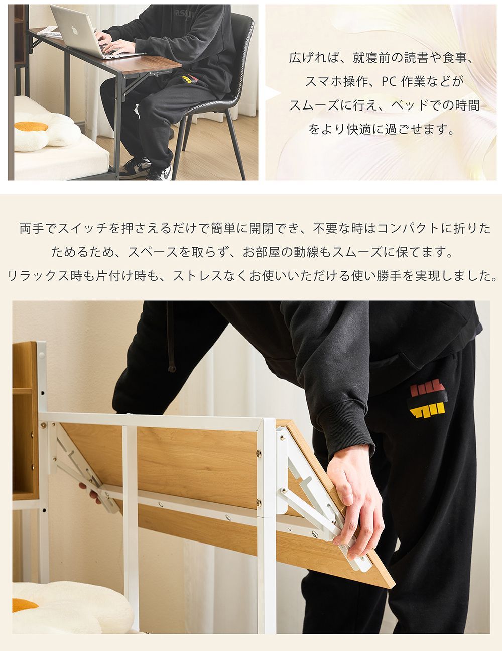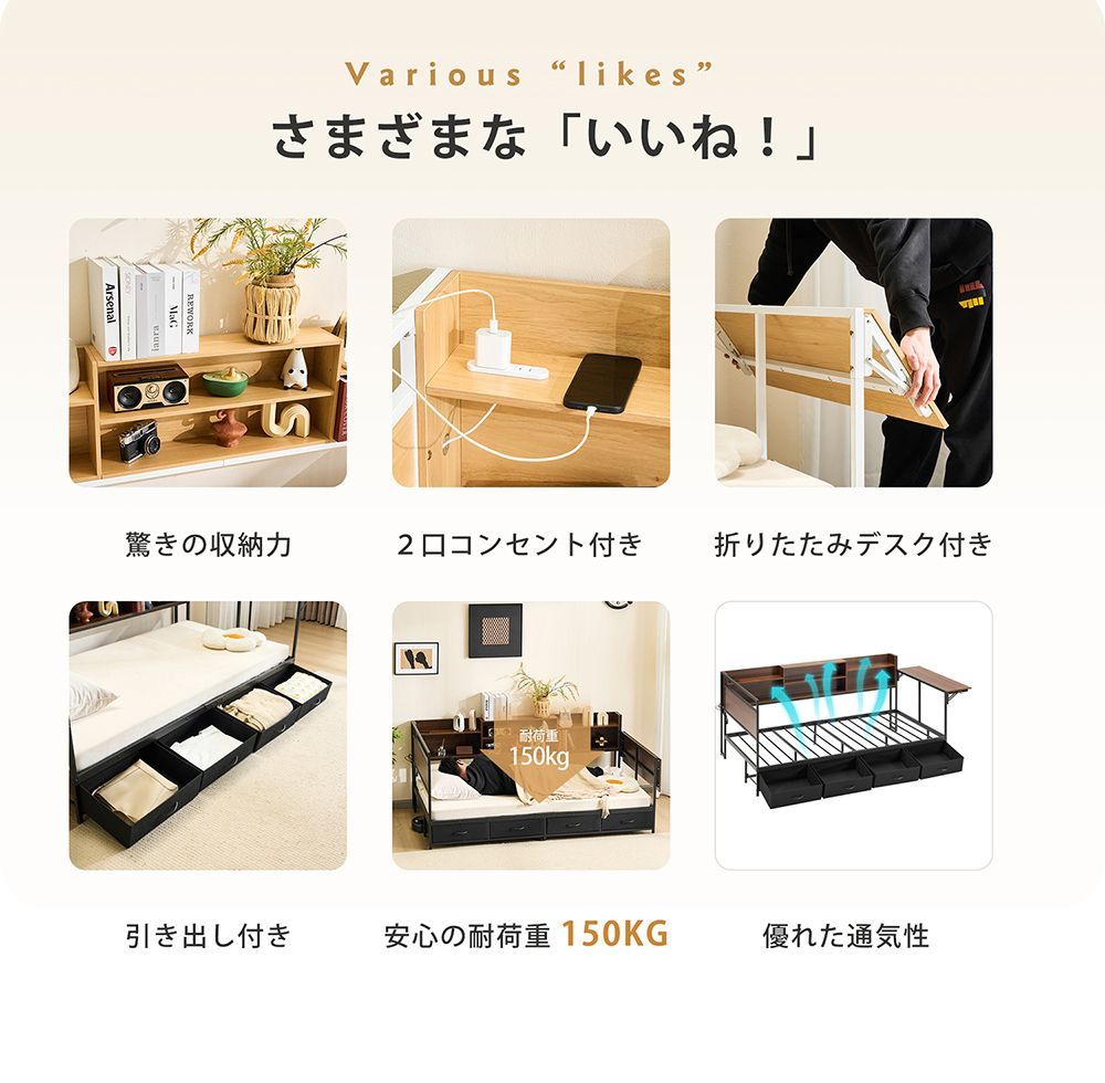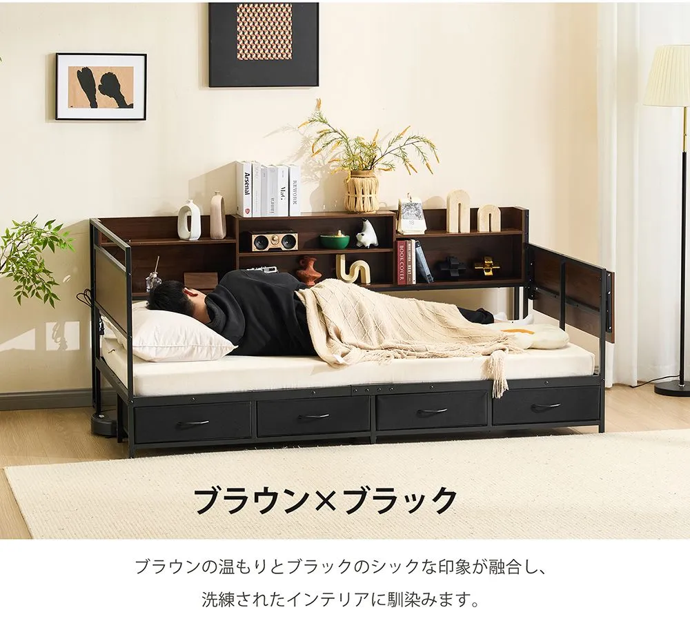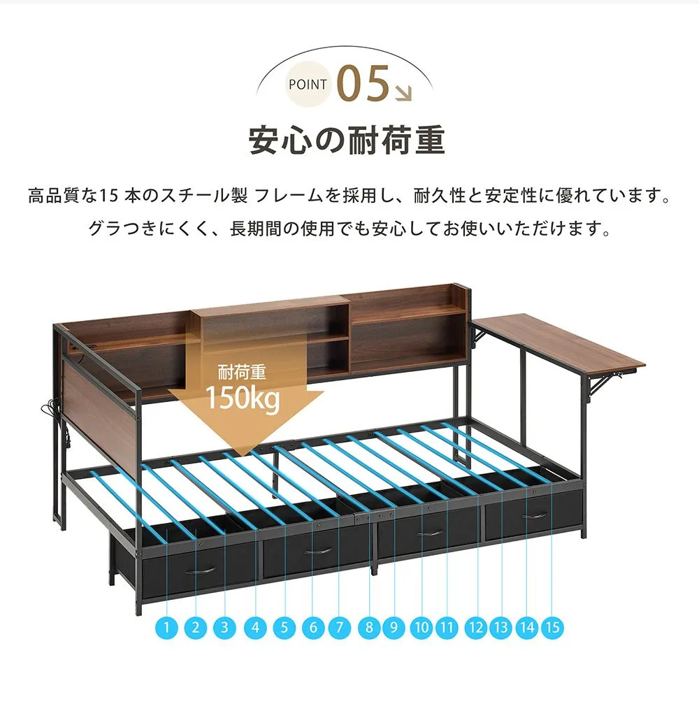 【全店7%OFFクーポン!】システムベッド 頑丈 シングル 引き出し付き 折りたたみデスク付き ロータイプ 子供ベッド コンセント付き 宮付き 収納棚付き 北欧風 大人 一人暮らし ベッド ホワイト ブラック 省スペース システム